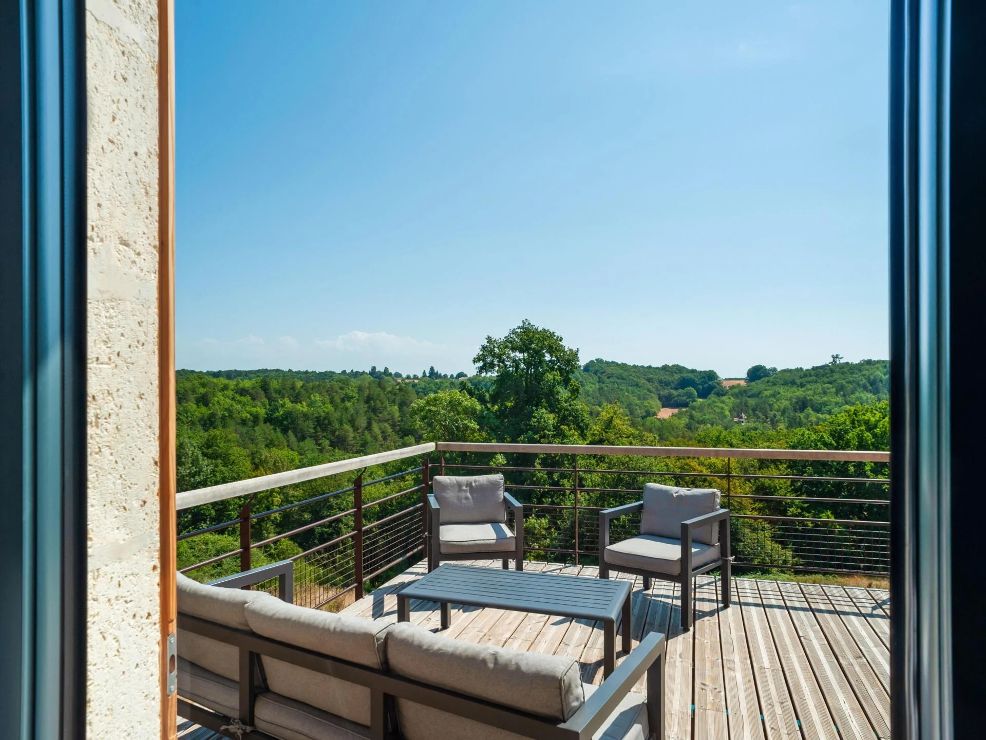 Dit vakantiehuis in Fouleix is een prachtig architecturaal gerenoveerd huis. Via een houten zwevende baan, die uitgeeft op de omliggende valei, bereikt u de vakantiewoning te midden de bossen. Het vakantiehuis zelf geniet van grote ruimtes die veel lichtinval hebben. De grote open keuken is volledig uitgerust. Vanop de verschillende verdiepingen heeft u toegang tot een groot terras met panoramisch zicht. Op de begane grond bevinden zich 3 grote slaapkamers die uitgeven op de riante tuin en het grote verwarmd zwembad (wateralarm, 12 x 3 m., diepte: 1.5m, geopend van juni t/m Sep).