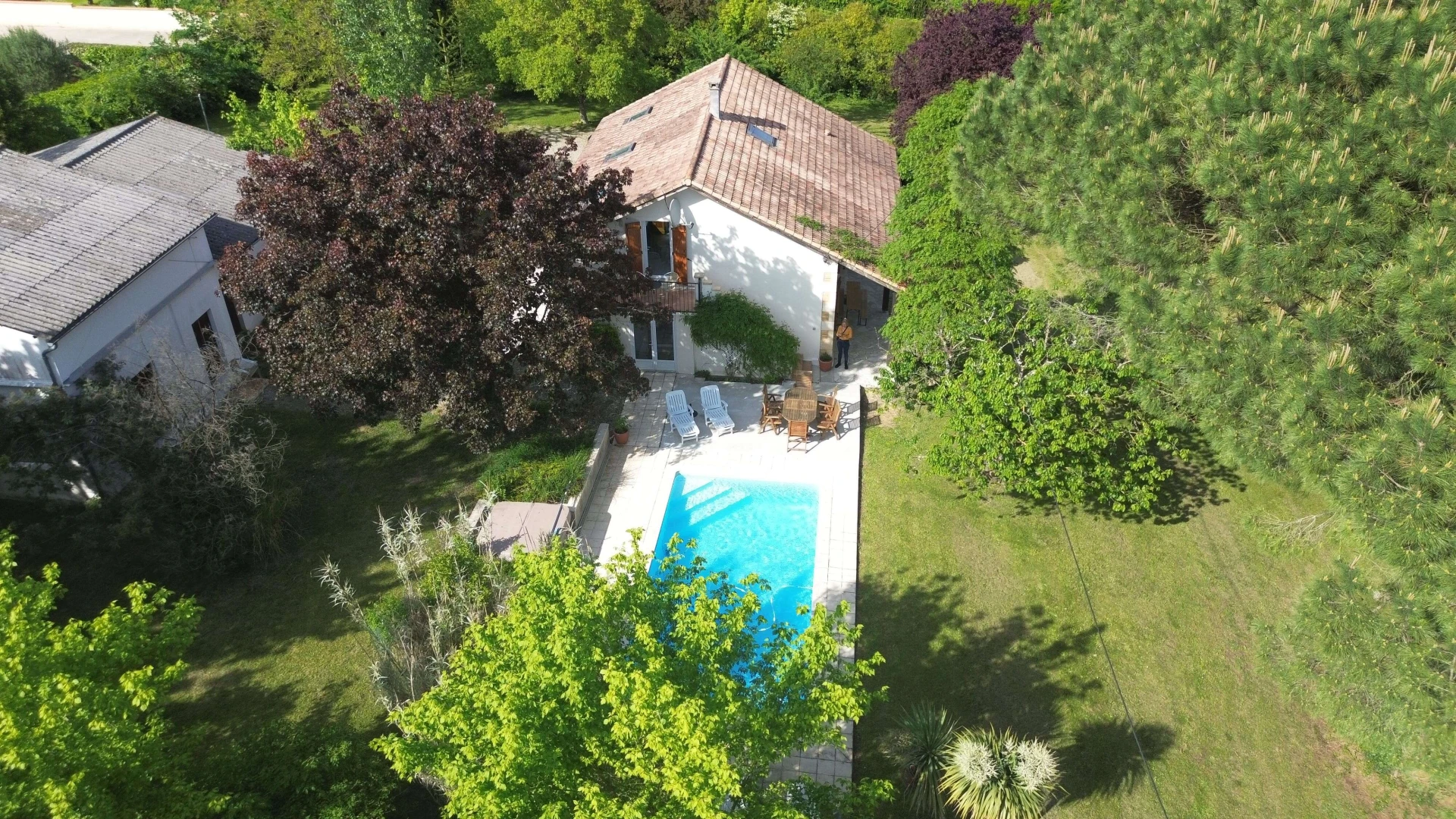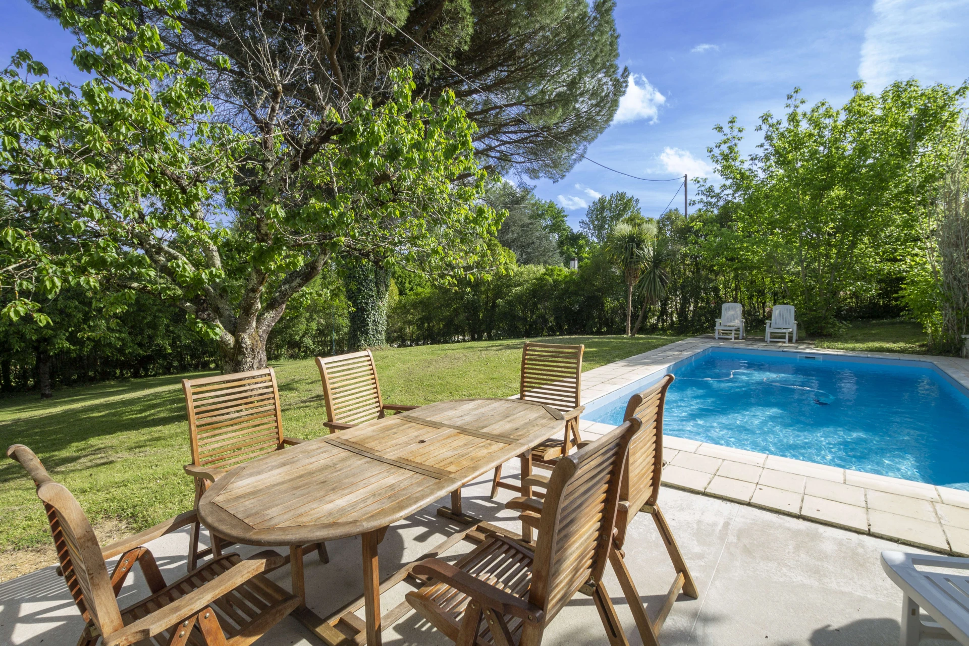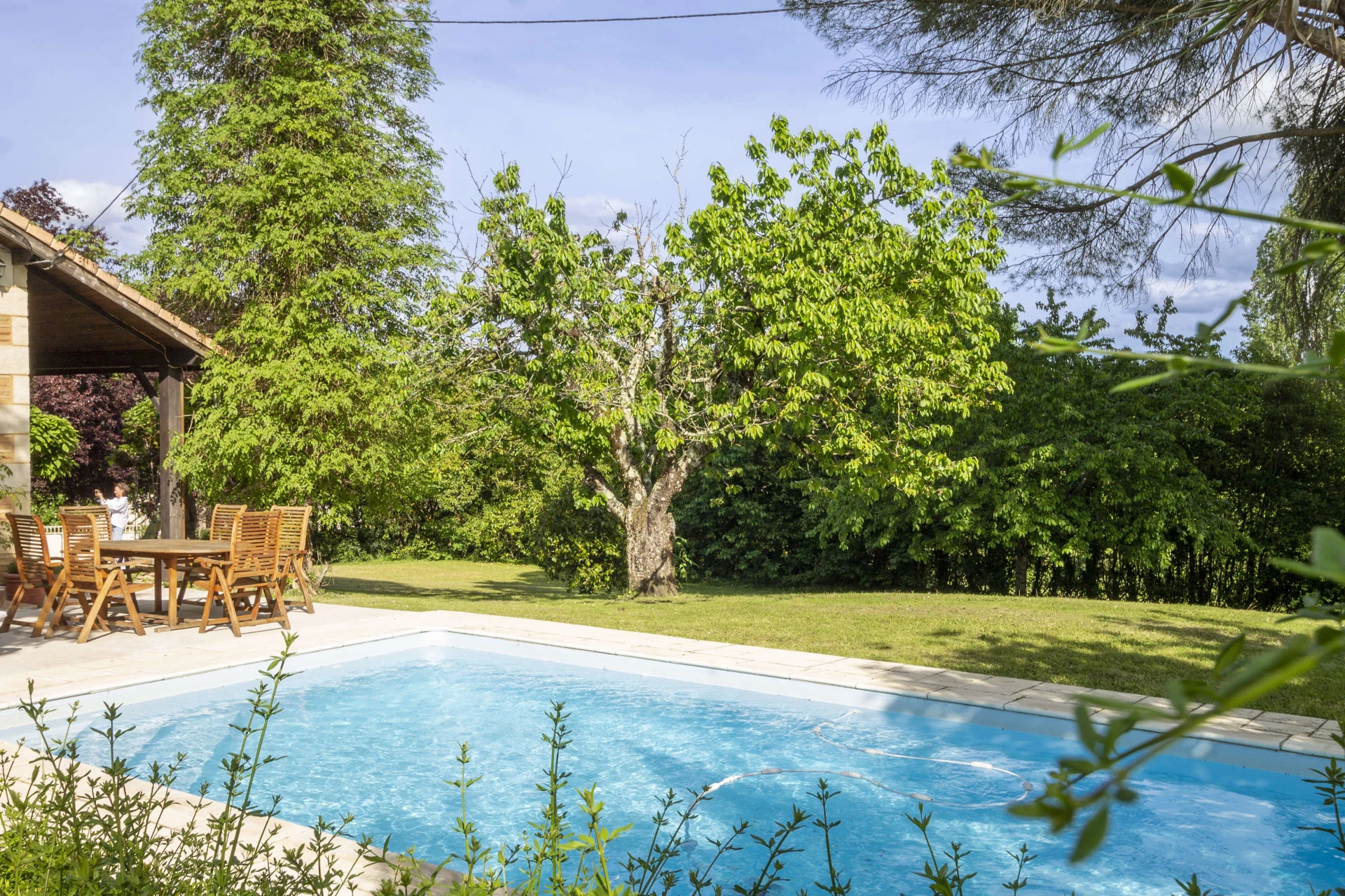 Dit fantastisch vakantiehuis met privé zwembad in Lot-et-Garonne heeft een grote mooie tuin met een heerlijk privezwembad. Er zijn grasperken, bomen en en verschillende terrasjes en hoekjes om te ontspannen. Alles wat u nodig heeft voor een rustige, zonnige familievakantie. Het privé-zwembad is 8x5m met een diepte van 1 tot 2 meter. Het zwembad is verlicht en heeft romeinse treden.