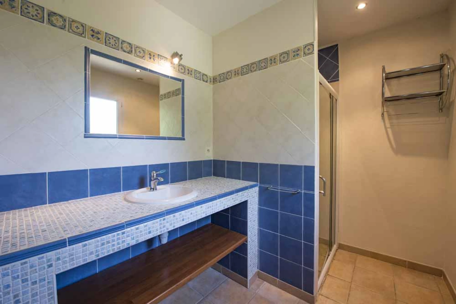 Deze recente woning van 130 m² beschikt over 3 ruime slaapkamers, elk met een eigen badkamer met douche en lavabo – ideaal voor families of meerdere koppels. Er zijn 2 aparte toiletten aanwezig. De volledig uitgeruste open keuken biedt alle comfort: koelkast met diepvriezer, gasfornuis, elektrische oven, microgolf, vaatwasser en wasmachine. De gezellige woonkamer met sofa’s sluit naadloos aan op de eetruimte en is voorzien van tv, dvd-speler, muziekinstallatie en wifi. Dankzij de airconditioning blijft het binnen altijd aangenaam fris.