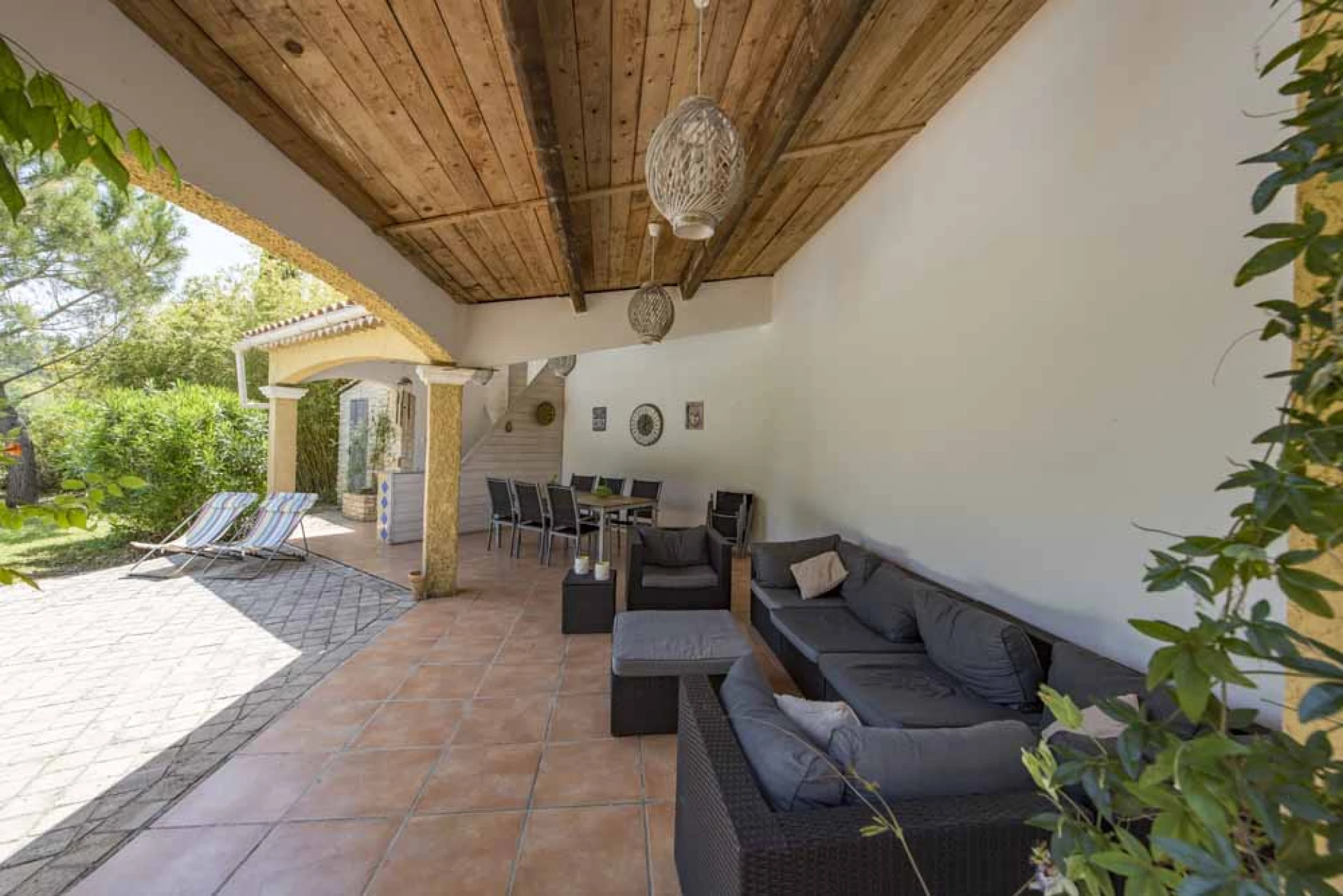 Dit vakantiehuis beschikt over een prachtig aangelegd domein van 2000 m² met een ruim terras van 100 m², deels overdekt, perfect om buiten te eten of te relaxen. Er is een volledig ingerichte buitenkeuken met koelkast en barbecue – ideaal voor zomerse kookmomenten. Het privézwembad (9 x 4,5 m, diepte 1,5 m) is uitgerust met een alarminstallatie en wordt onderhouden via zoutdialyse (zonder chloor). Rond het zwembad staan ligbedden klaar om in alle rust te genieten van de zon of een goed boek. Voor de wagen is er een schaduwrijke staanplaats op de oprit.