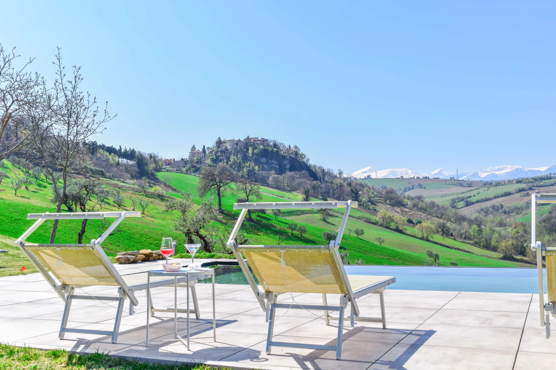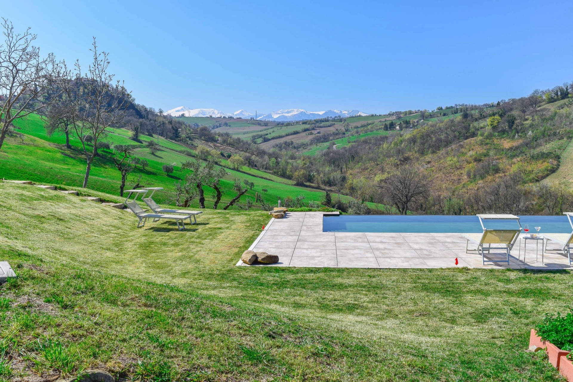 Deze mooi gerestaureerde vakantievilla van ongeveer 260 m2 ligt zeer prive met een mooi uitzicht op de Monte Sibillini, Colmurano en Ripe San Ginesio. Er is een infinity zwembad van 10×4 meter, een echte houtoven waarin je de lekkerste pizza’s kunt bakken, een BBQ en overdekt terras.