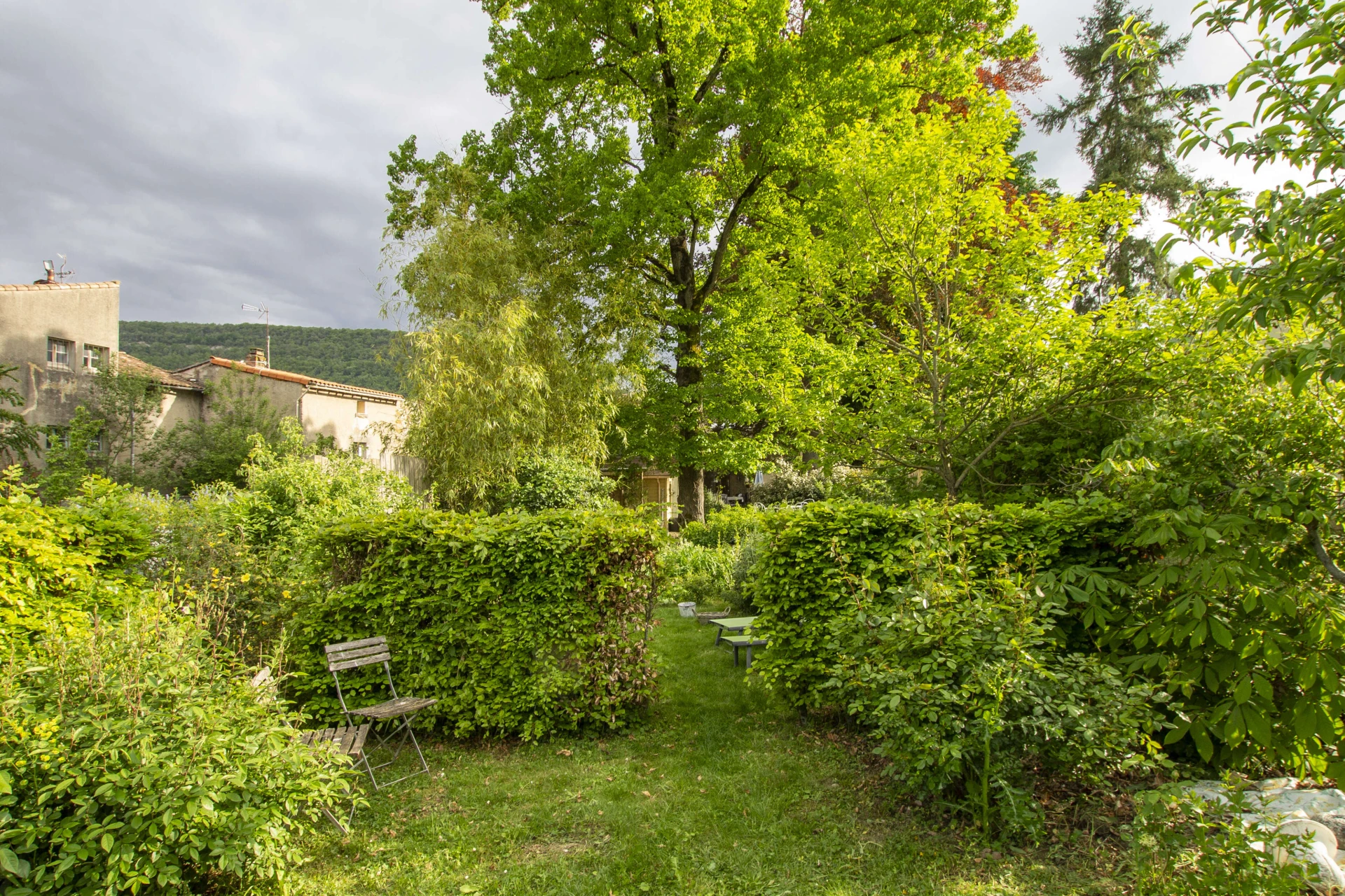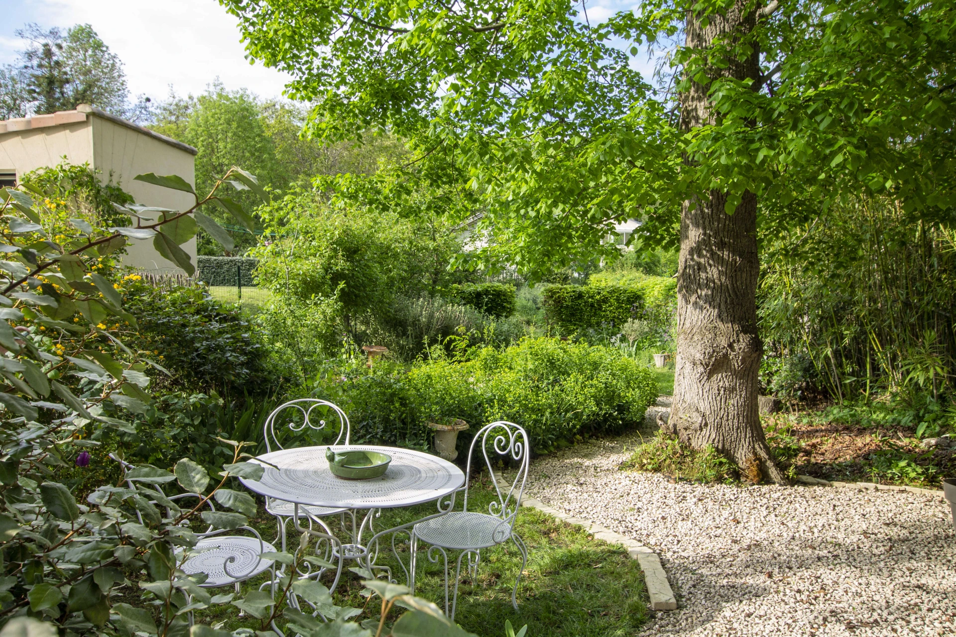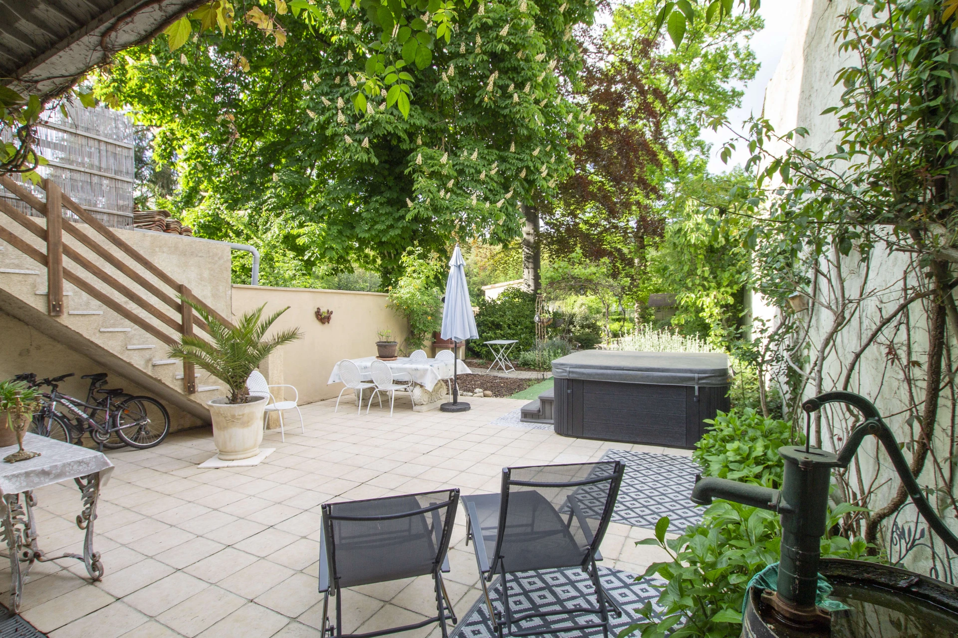 De tuin is bijzonder gezellig met veel kruiden en planten. Er is een barbecue, maar ook een egg-cooker waar je heerlijke gerechten kan in klaarmaken. 's Avonds is het zeer sfeervol en romantisch door de verlichte tuin en het verlicht zwembad.
