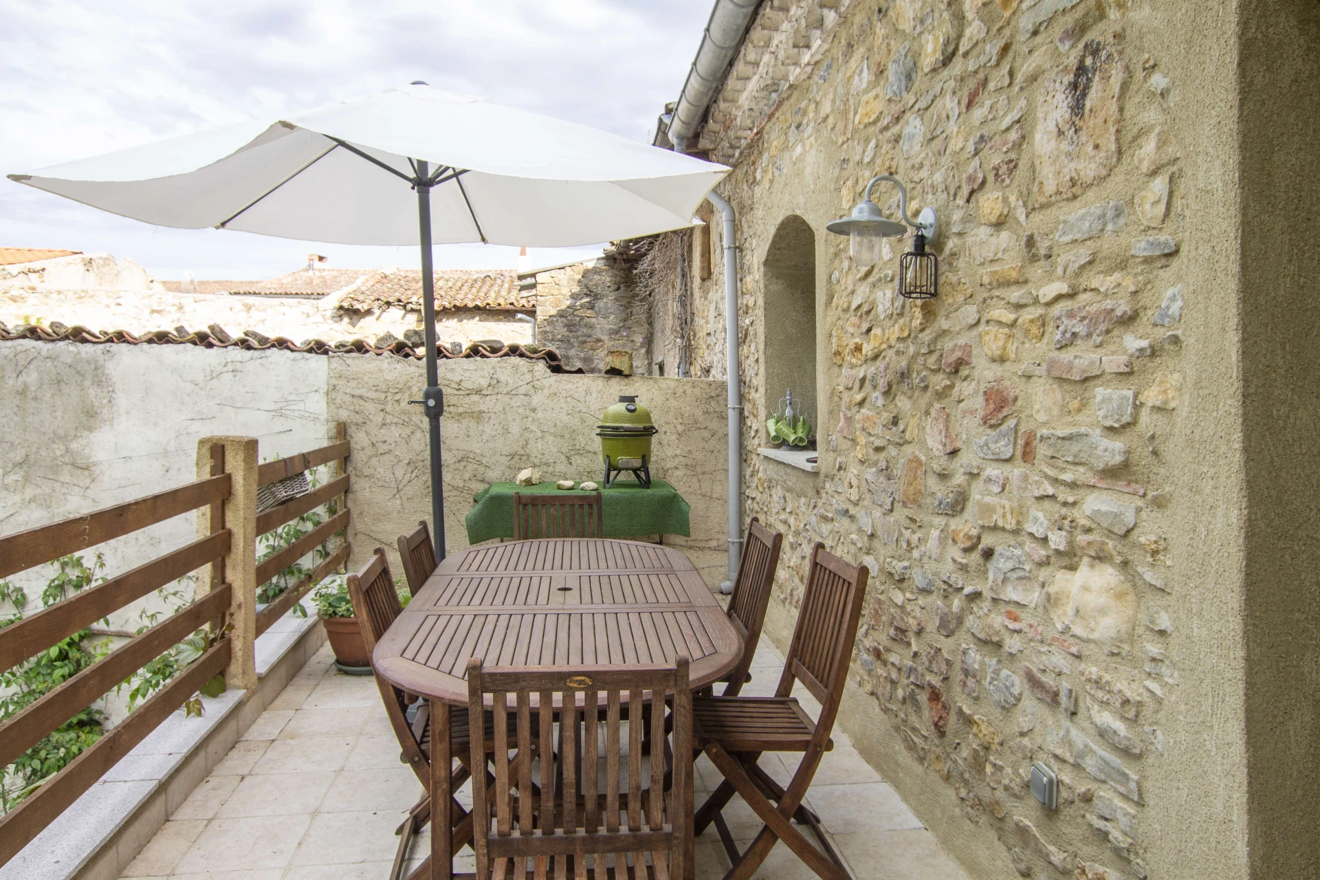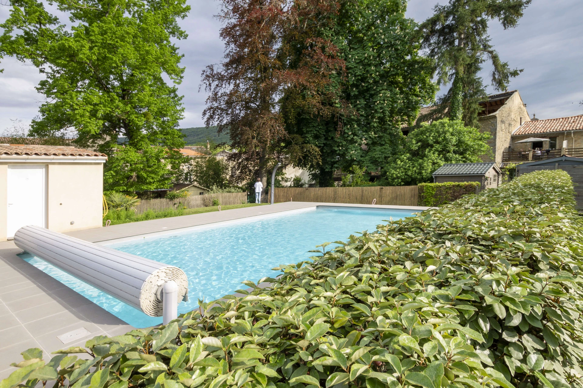 In het vakantiehuis La Bastide des Roses komt men volledig tot rust. Neem een duik in het groot gemeenschappelijk zwembad (12x6m gedeeld met slechts 3 andere kleine logementen), geniet van de gezellige tuin of drink op het terras een lekker glas Franse wijn met uitzicht op de tuin en heuvellandschappen. Het vakantiehuis is een prachtig 17de eeuws dorpshuis met enorm veel charme en een nostalgische sfeer. Er werd een perfecte balans gevonden tussen nieuwe en authentieke interieur elementen. Alle slaapkamers hebben een eigen terras. De woning bestaat uit een gelijkvloers en een verdieping die toegankelijk is via een buitentrap. Eigenlijk is deze woning ook ideaal voor 2 gezinnen want zowel op het gelijkvloers als de verdieping is er een living en keuken. De woning wordt altijd in zijn geheel verhuurd. Deze authentieke vakantiewoning vraagt geen airconditioning. In die streek koelen de avonden aangenaam af voor een goede nachtrust.