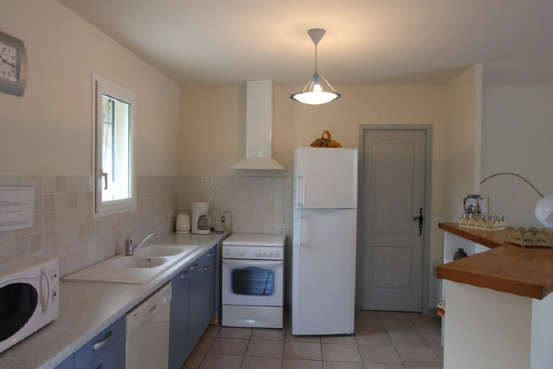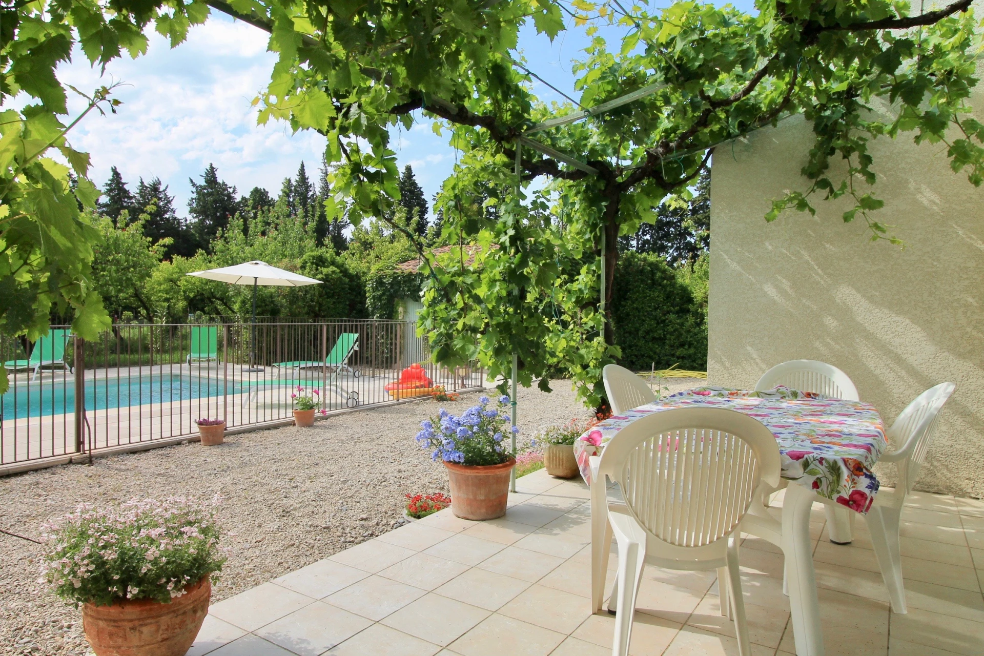 Het interieur is mooi, fris en praktisch met een aangenaam comfort. Airconditioning in de gang die de slaapkamers en de leefruimtes koelt. Vanuit de living en keuken heb je een opendraaiende deur die uitgeeft op het terras en de tuin. Hier geniet je ook van het omheinde privé zwembad met zicht op veel groen (8x4m - diepte 1,50m, open vanaf 1 mei - omheind met smeedijzeren afsluiting). Een leuk vakantiehuisje in het hartje van de Provence.