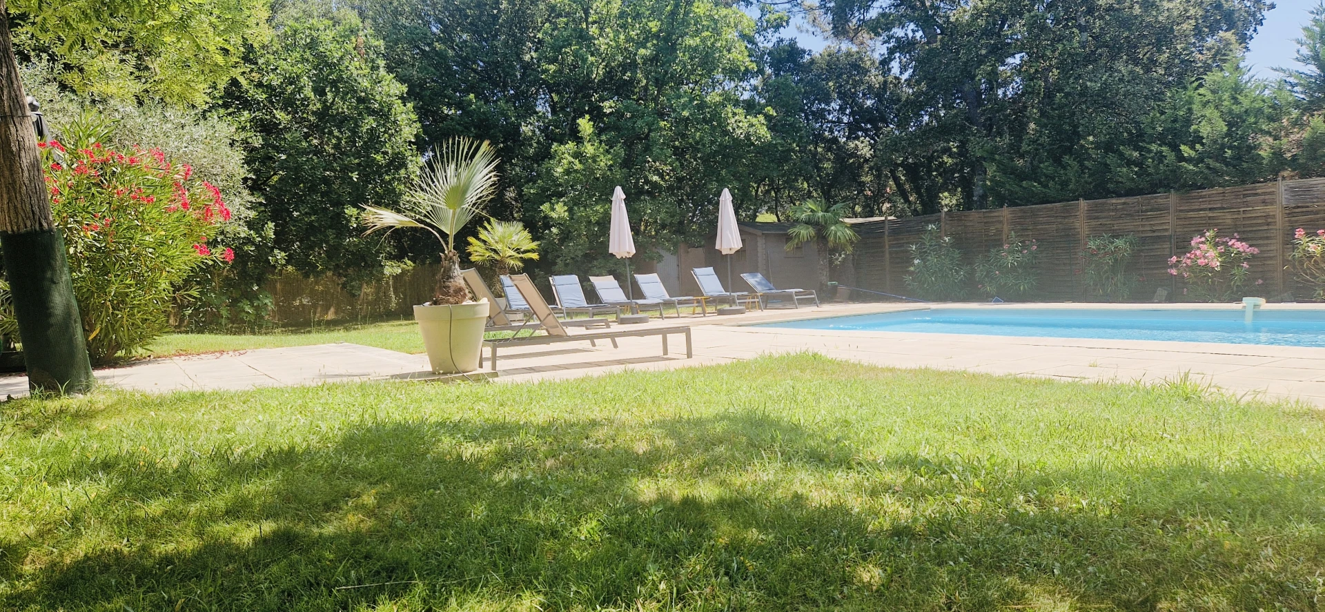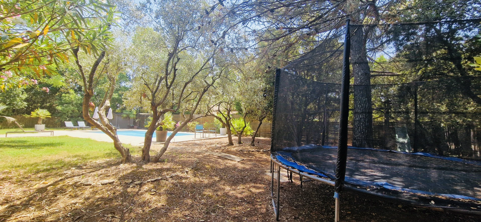 Er is een mooi groot privézwembad (zout water, 10x5 m, diepte van 1,40m tot 2m, uitgerust met een alarm). De glijbaan, schommel, reuzentrampoline en tafeltennistafel garanderen veel plezier voor jong en oud . De prachtige tuin, met zijn weelderig groene gazon en 200 m² heerlijke terrassen is heerlijk om te relaxen met ligstoelen en tuinmeubilair.