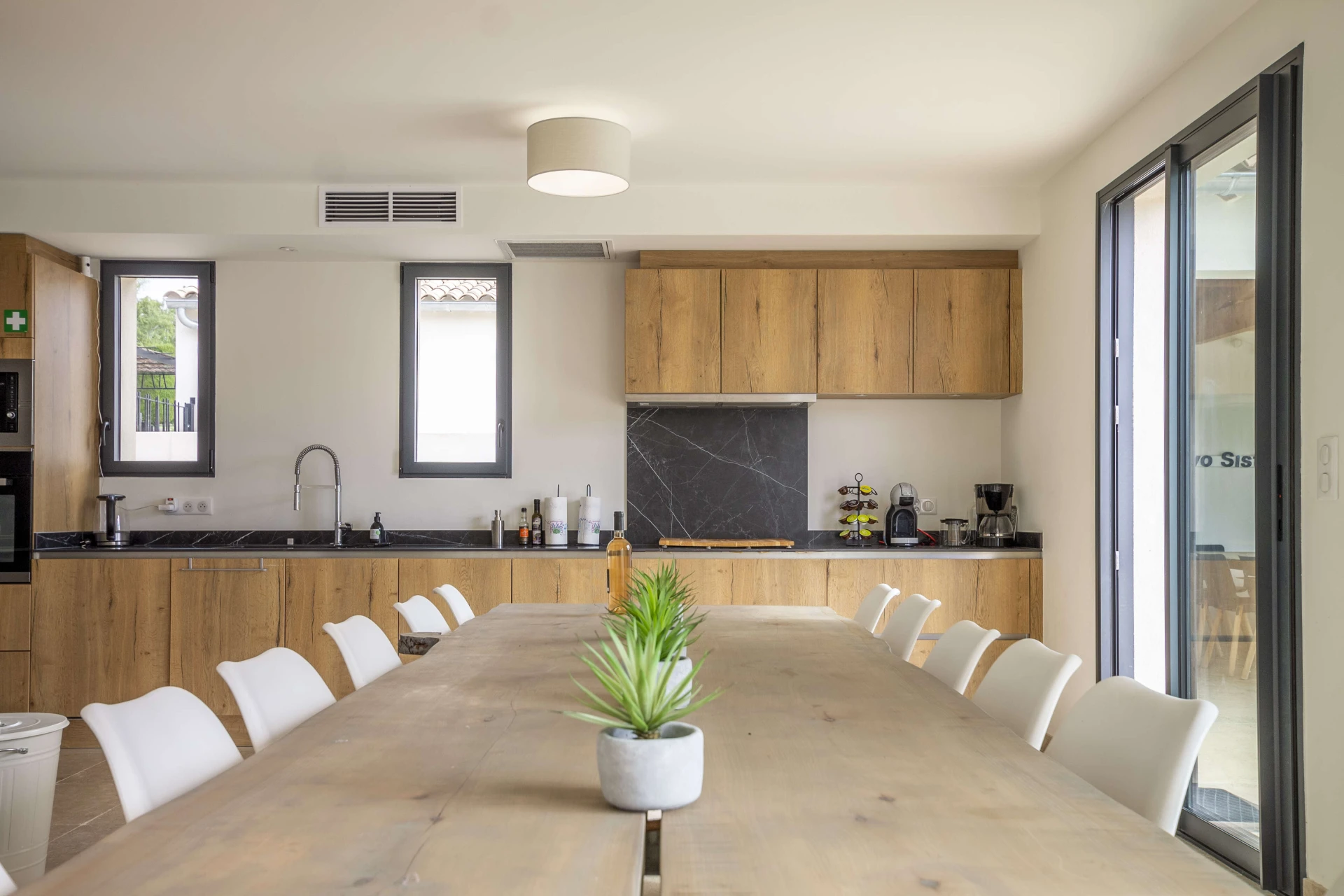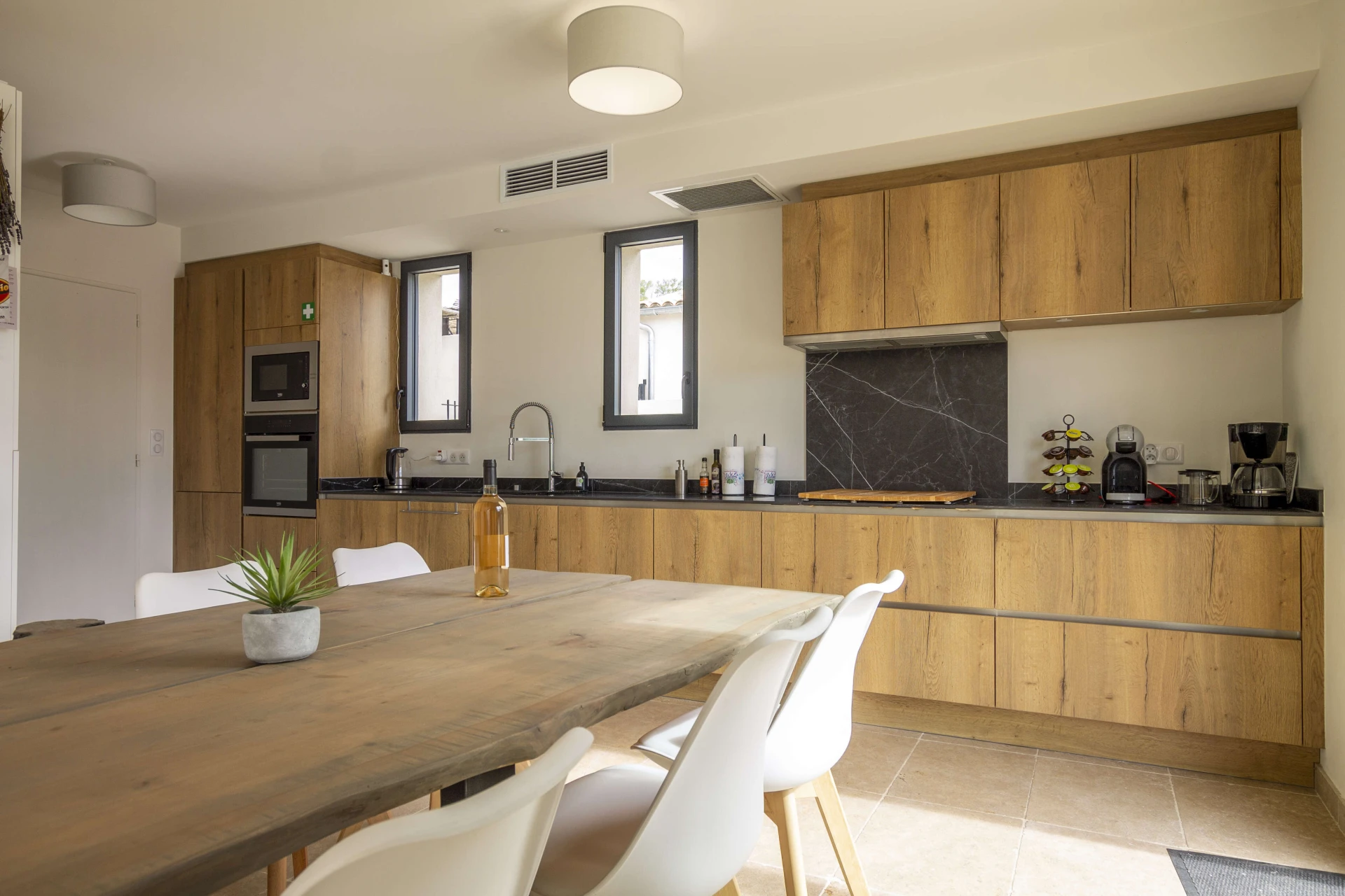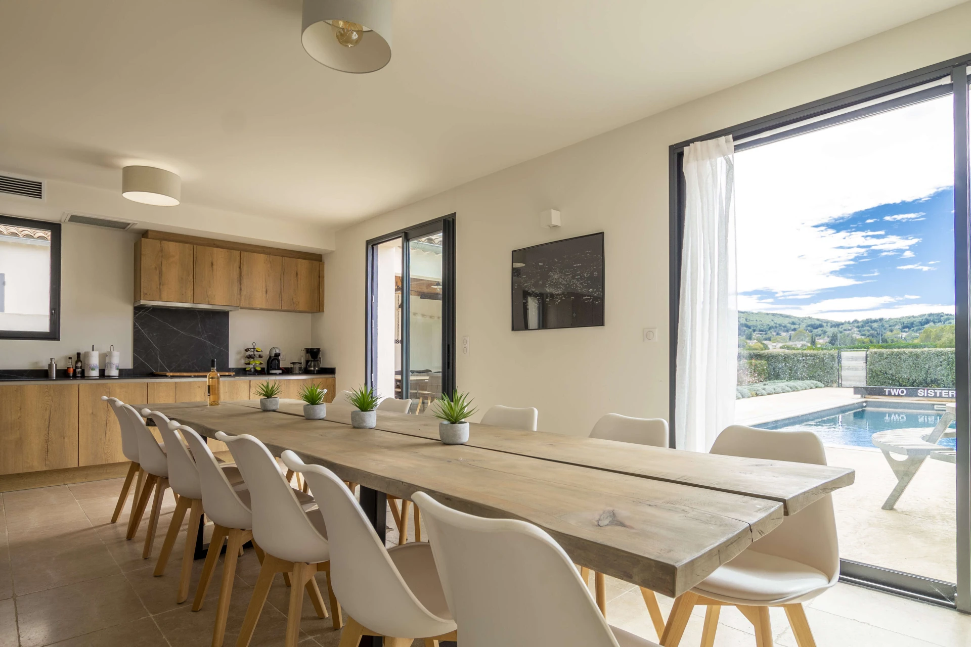 Dit vakantiehuis met privé-zwembad (8x3,5m - verwarmd) en op wandelafstand van het stadje Malaucène, geniet van een moderne en comfortabele inrichting. De open uitgeruste keuken loopt naadloos over in de lichtrijke eetkamer en comfortabele living. Deze geven allen uit op het open terras, de tuin en het privé zwembad. Eén slaapkamer en badkamer bevindt zich op de gelijkvloers en is toegankelijk voor personen met een verminderde mobiliteit. De overige slaapkamers bevinden zich op de bovenverdieping en hebben allemaal airco. De inrichting is bijzonder smaakvol met mooie, duurzame materialen.