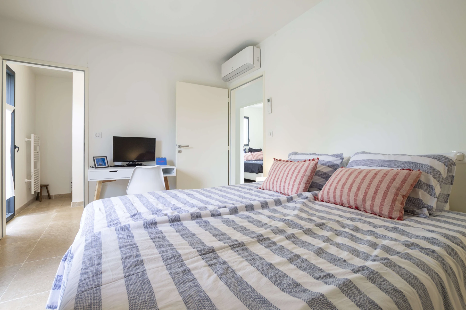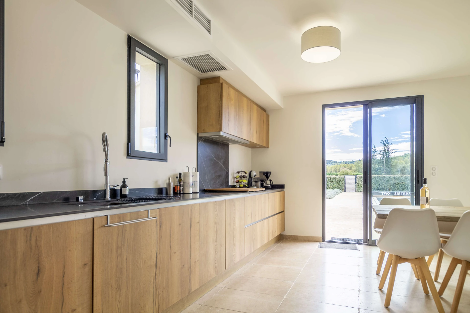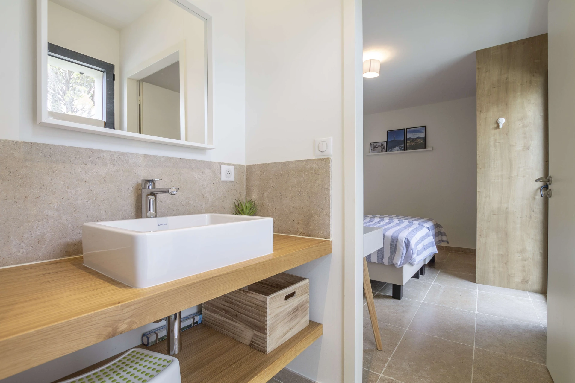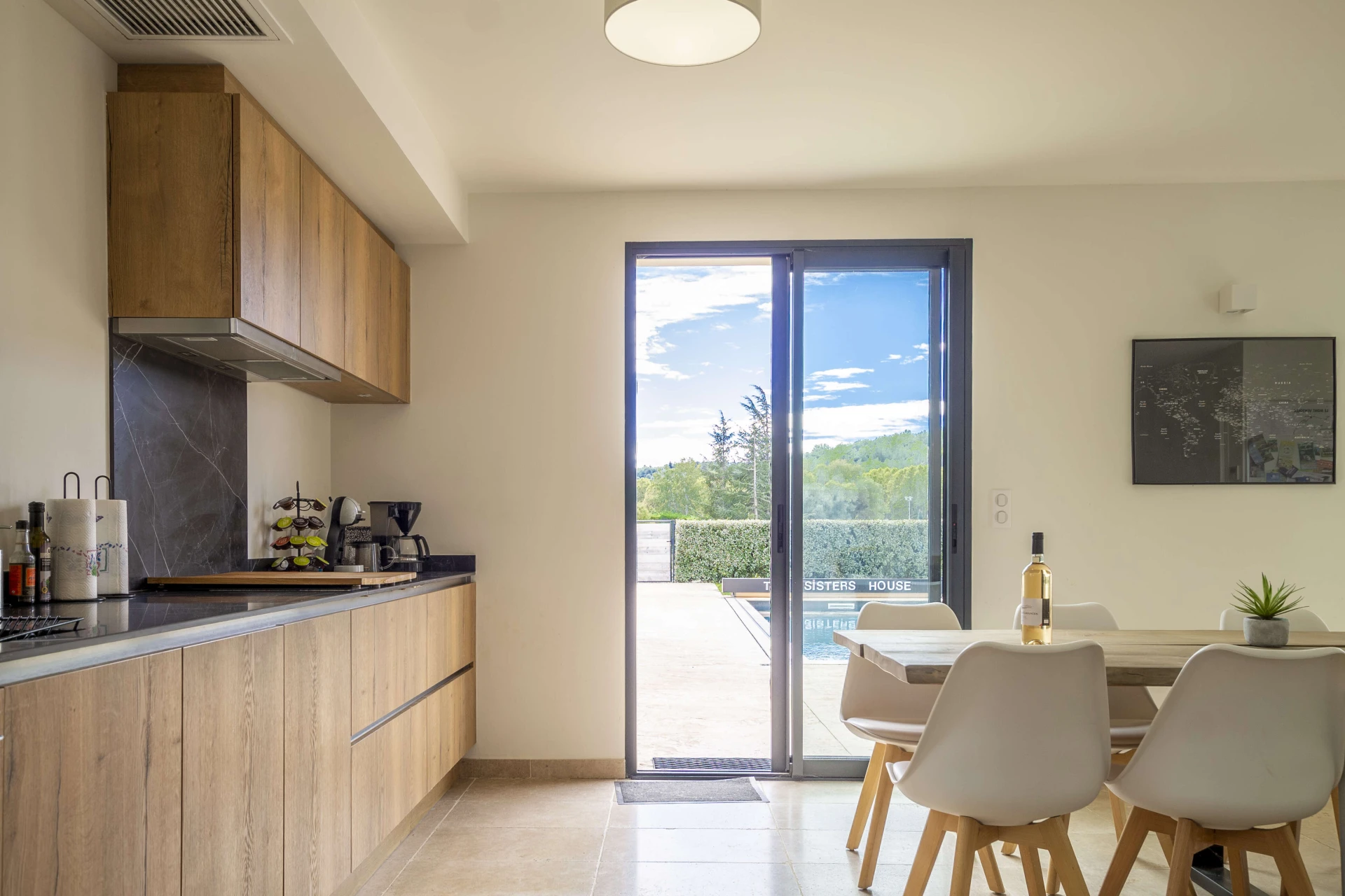 Dit vakantiehuis met privé-zwembad (8x3,5m - verwarmd) en op wandelafstand van het stadje Malaucène, geniet van een moderne en comfortabele inrichting. De open uitgeruste keuken loopt naadloos over in de lichtrijke eetkamer en comfortabele living. Deze geven allen uit op het open terras, de tuin en het privé zwembad. Eén slaapkamer en badkamer bevindt zich op de gelijkvloers en is toegankelijk voor personen met een verminderde mobiliteit. De overige slaapkamers bevinden zich op de bovenverdieping en hebben allemaal airco. De inrichting is bijzonder smaakvol met mooie, duurzame materialen.