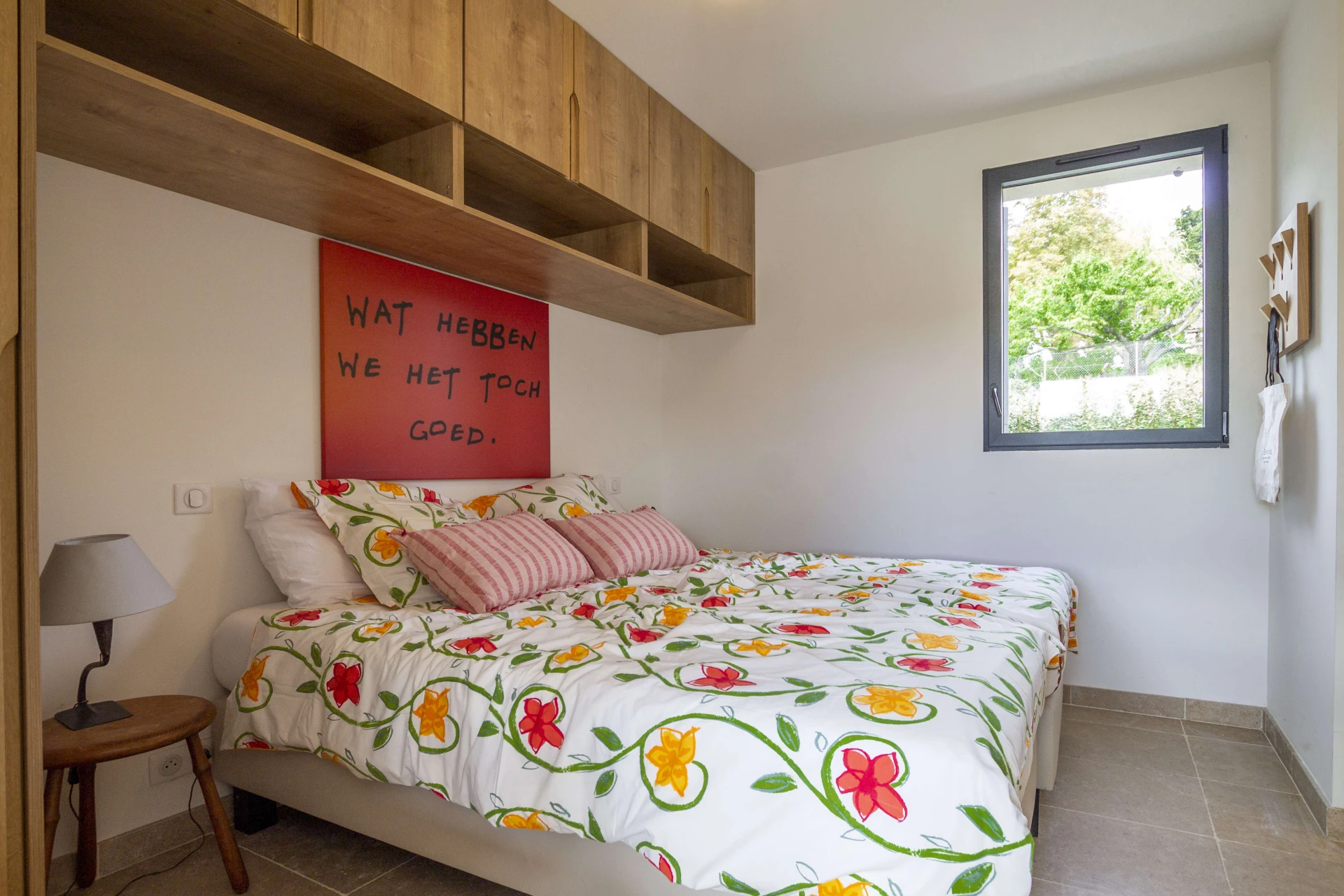 Het vakantiehuis in Zuid-Frankrijk voor 10 personen kijkt uit op een groot park dat met een hekje vanuit de tuin meteen toegankelijk is. Hier vind je meerdere sportterreinen (basket plein, tennisplein, looppiste, fitometer, skateramp, visvijver, ...) en veel ruimte om te spelen of te wandelen. De buren uit dezelfde residentie hebben ook directe toegang, dus het is een leuke hotspot om elkaar te leren kennen en het is helemaal niet druk. Een paradijs voor kinderen.