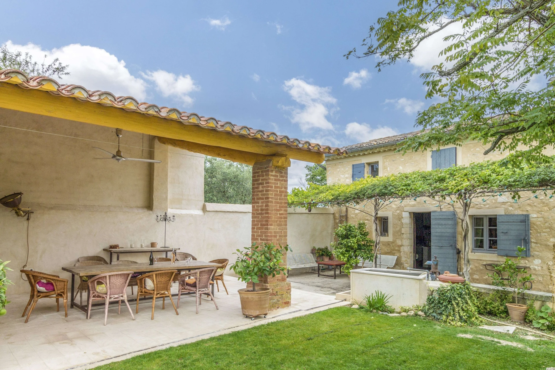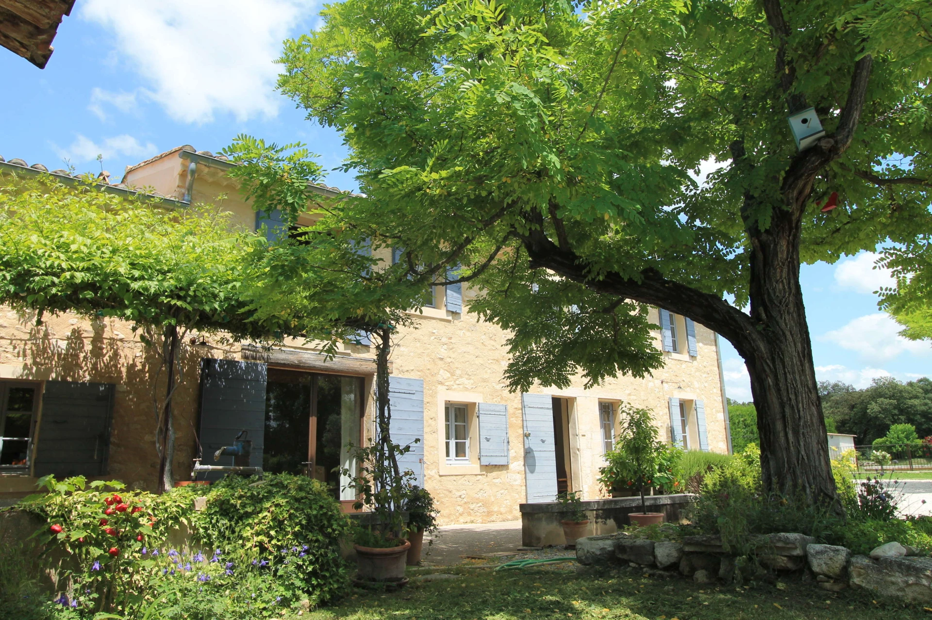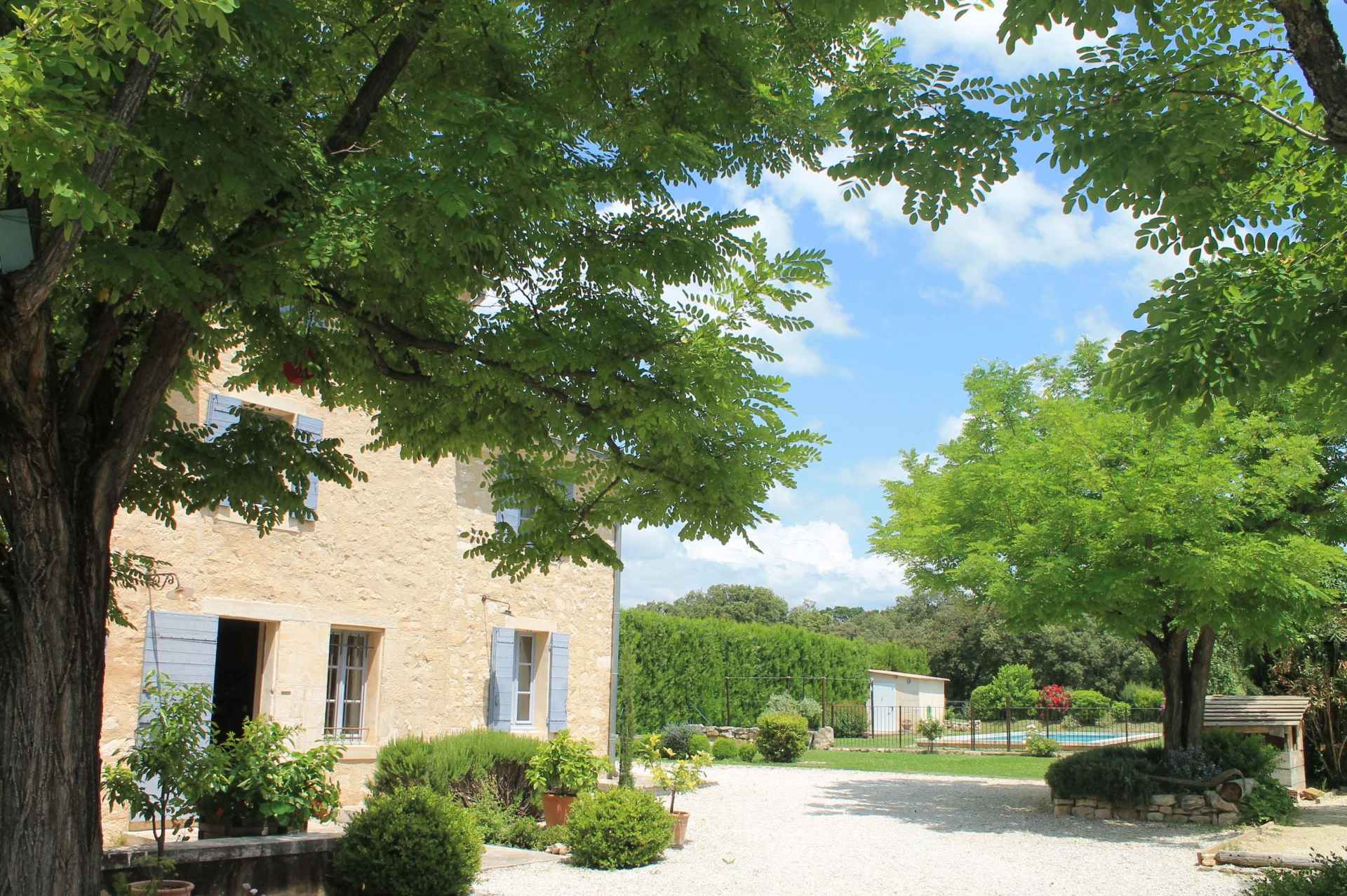 Dit vakantiehuis met privé zwembad heeft leuke ligzetels rond het zwembad, een prachtige tuin (2800m2) met verschillende aangename schaduwplekjes en zeer ruime en gezellige terrassen, voorzien van kwalitatief tuinmeubilair. De inrichting en de decoratie is met heel veel zorg en smaak gebeurd. Het prachtige, omheinde privé zwembad (14x4,5m-romeinse treden-omheind) met ligzetels is heel goed gesitueerd in de tuin. Je begeeft je met deze vakantiewoning tussen de wijngaarden, olijfbomen en lavendelvelden, ervaar hier het echte provencaalse gevoel.