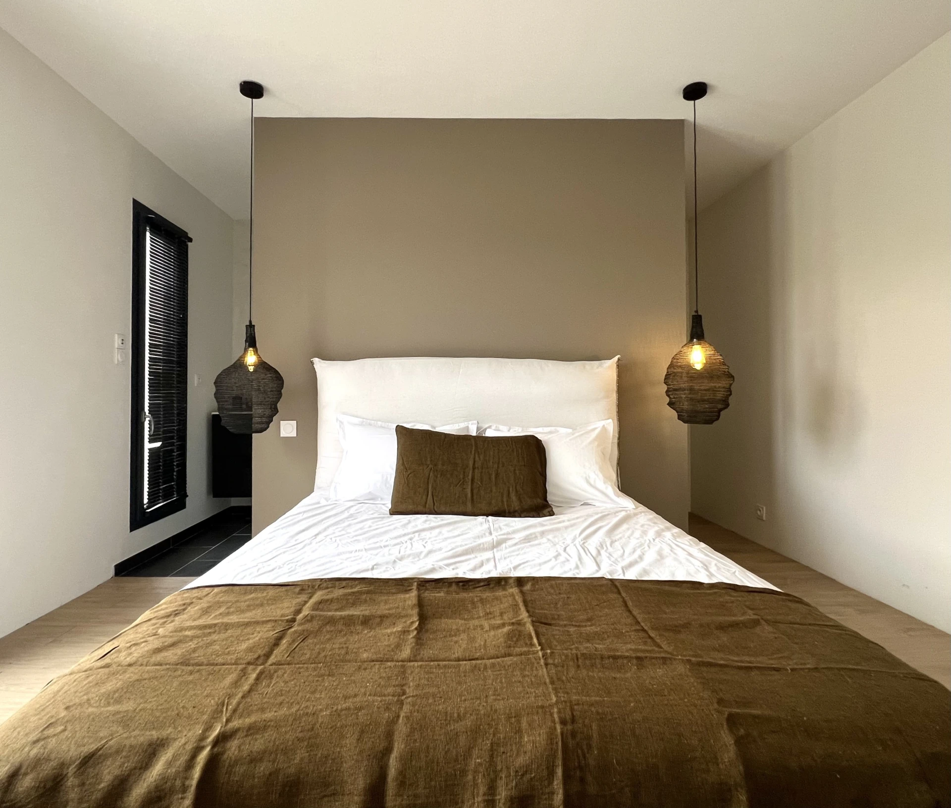 Villa de Baumes is een moderne en sfeervolle vakantiewoning voor 8 personen met privézwembad, gelegen in het hart van het charmante Beaumes-de-Venise (Provence, Zuid-Frankrijk), aan de voet van de Dentelles de Montmirail.