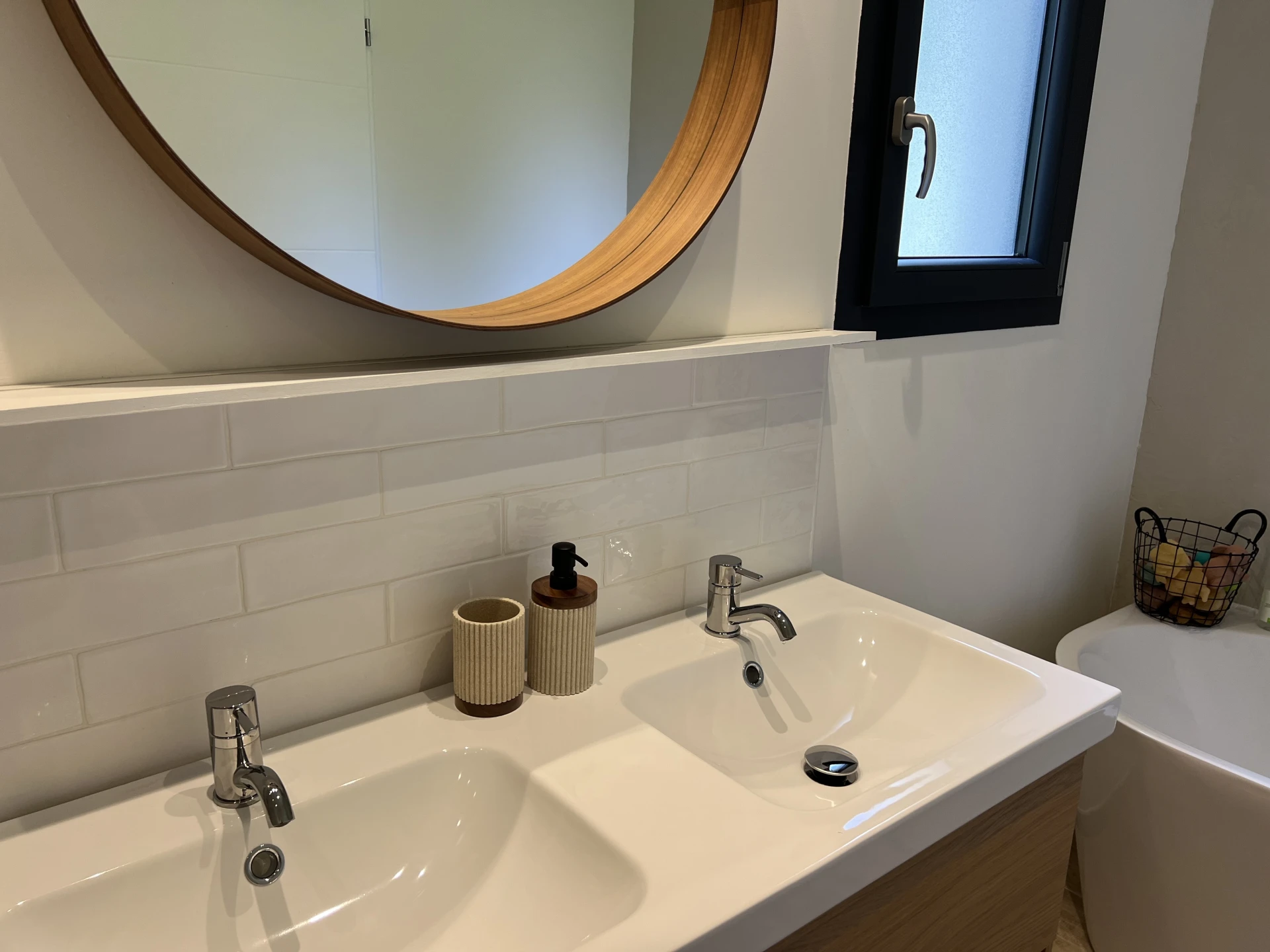 Villa de Baumes is modern, licht en warm ingericht en straalt comfort en rust uit. De leefruimte vormt het hart van de woning en combineert een gezellige woonkamer, een uitnodigende eethoek en een volledig uitgeruste open keuken. Grote raampartijen zorgen voor veel natuurlijk licht en creëren een aangename verbinding met het terras en de tuin.