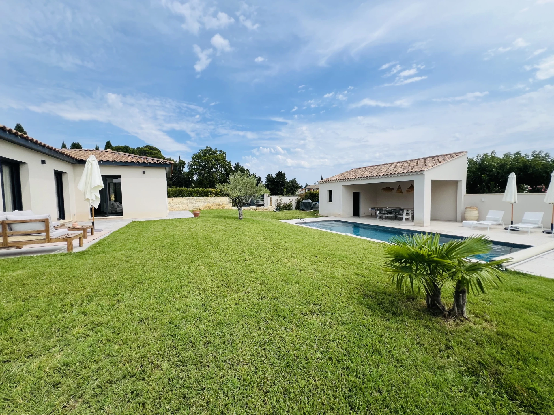 Buiten geniet men volop van het Provençaalse leven. Het privézwembad (10 x 3,5 m, diepte tot 1,70 m met treden in zwembad) heeft een alarm en is voorzien van verlichting. Buiten zijn er meerdere zonnige terrassen, met een poolhuis waar er een gezellige eethoek, ijskast en plancha aanwezig zijn. De omheinde tuin biedt privacy en rust.