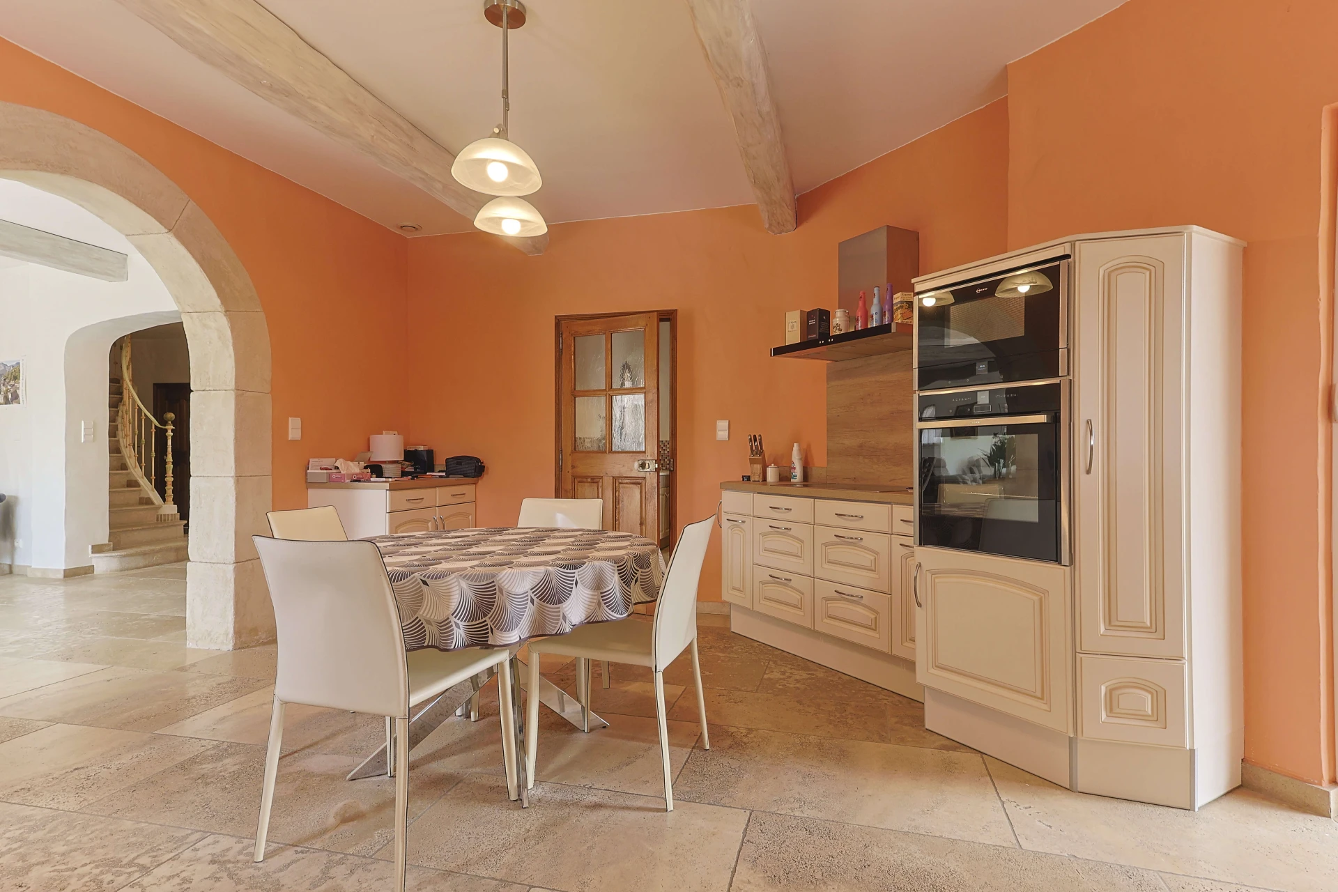 De grote terrassen zijn gemakkelijk toegankelijk via de openslaande deuren in de woon- en eetkamer, die uitkomen op een open, volledig uitgeruste keuken, met een kleine bijkeuken voor extra ruimte.
