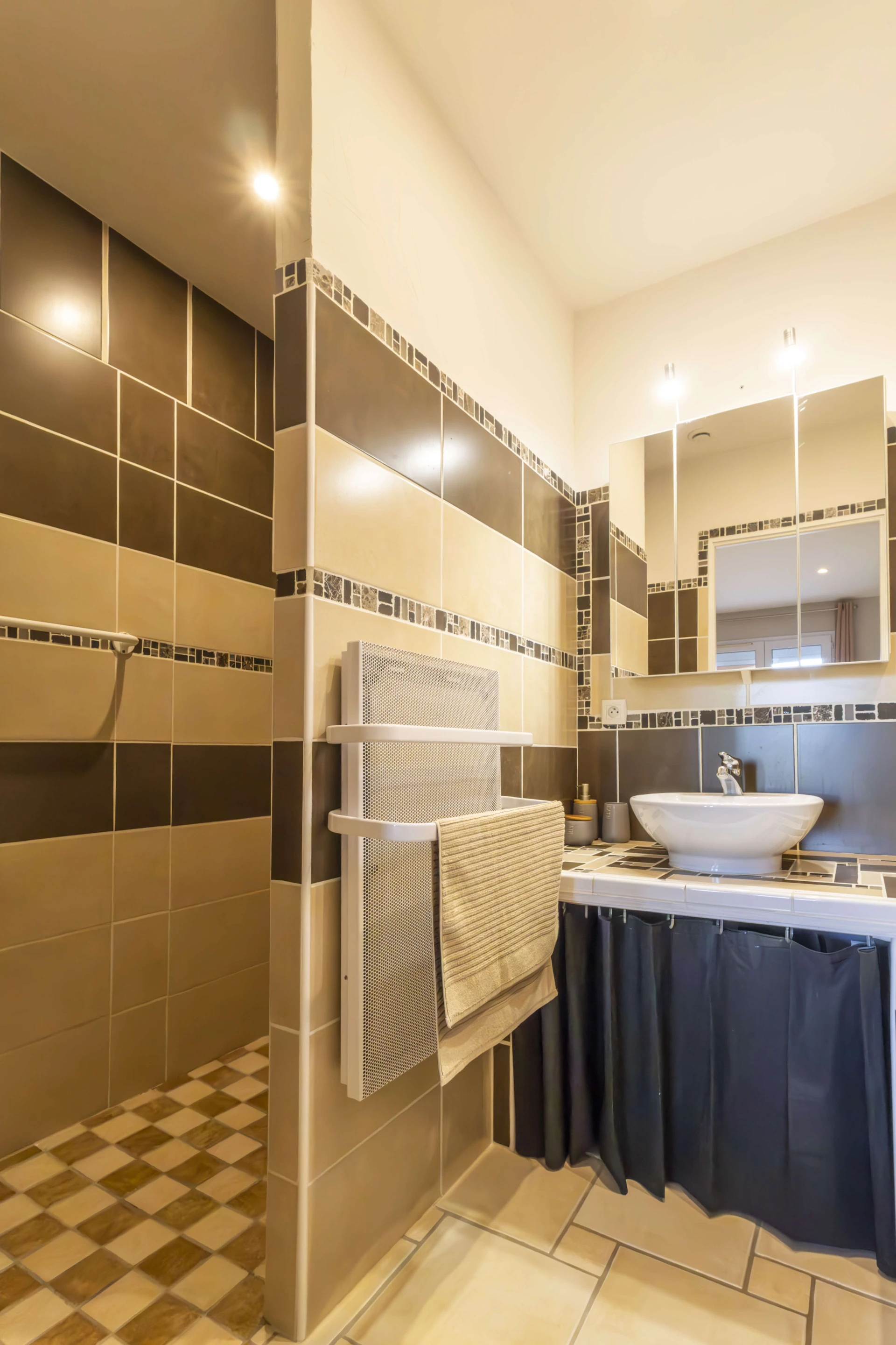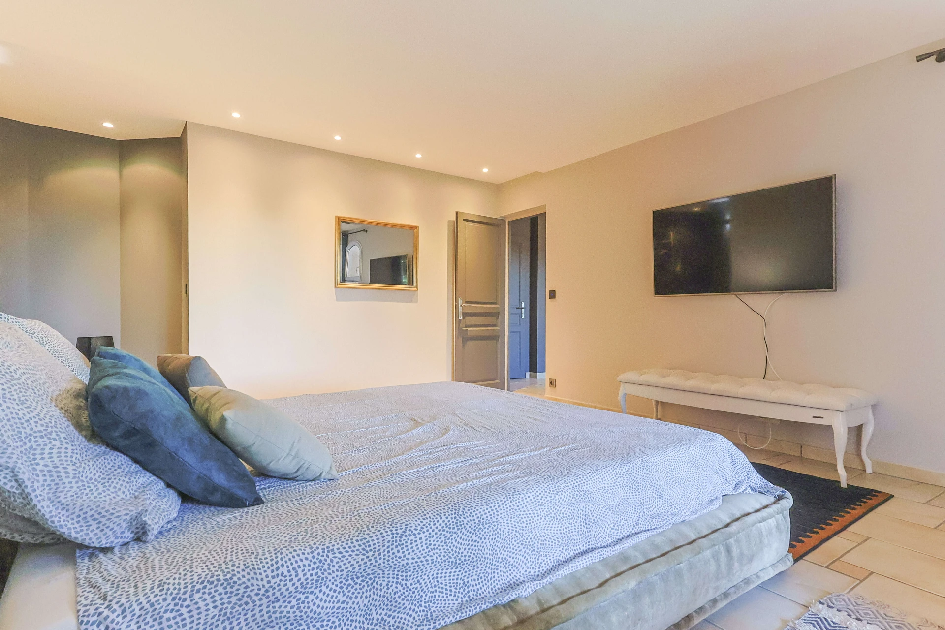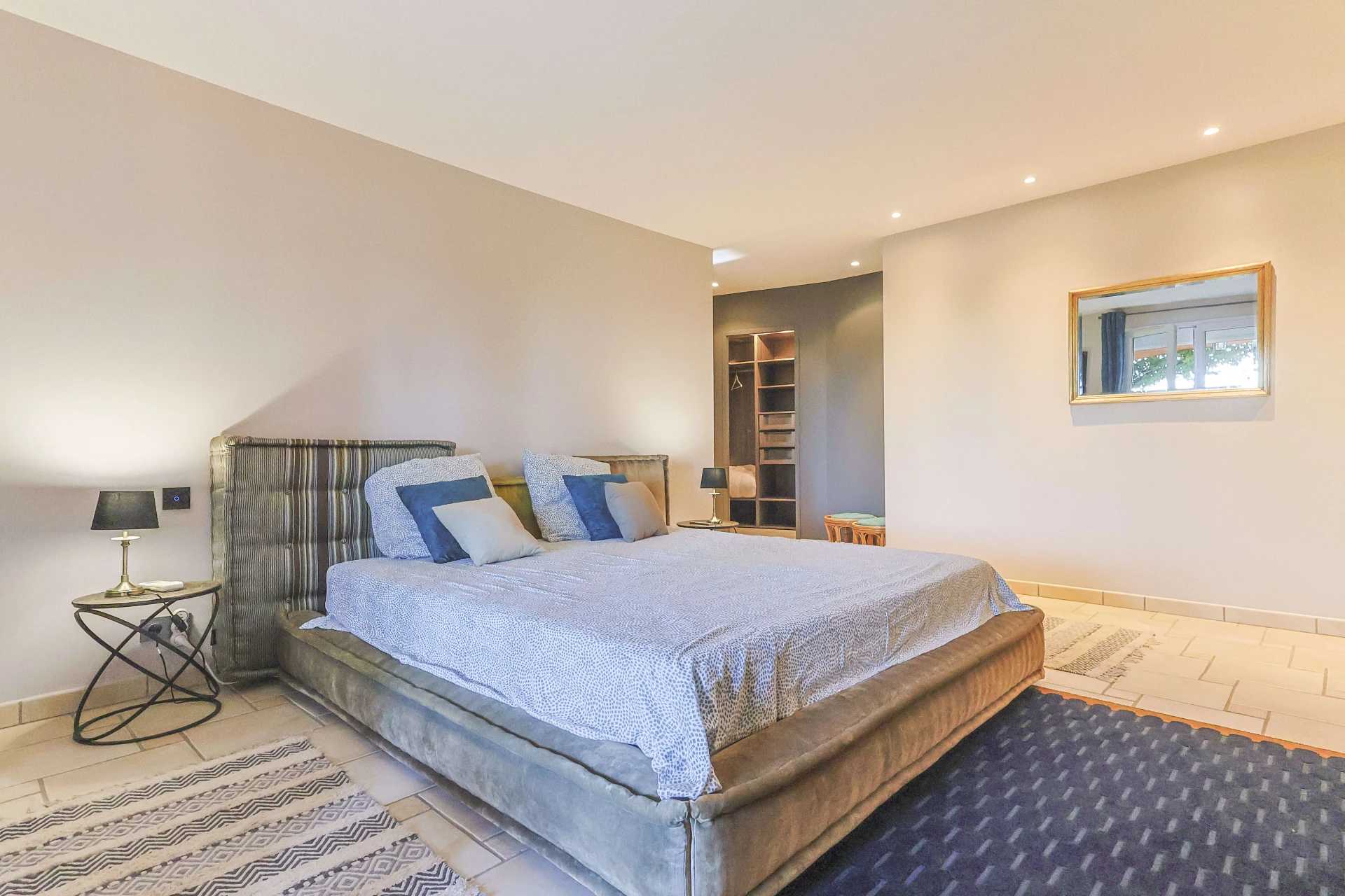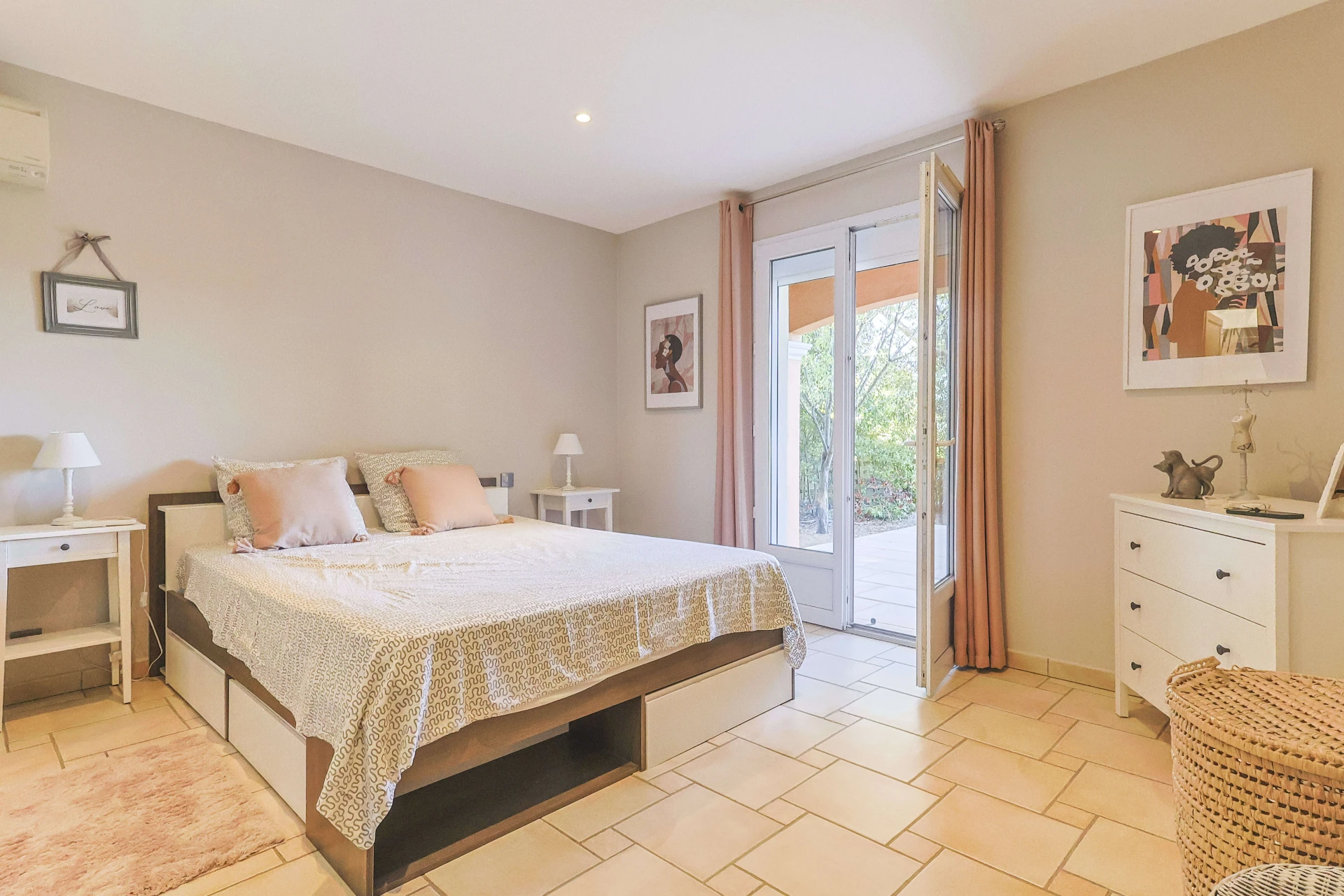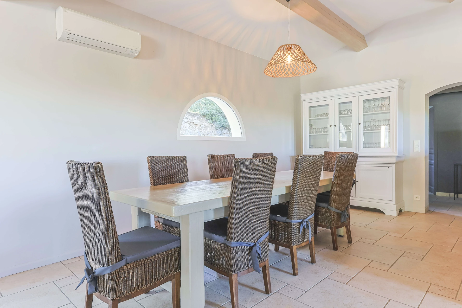 Dit typisch Provençaalse vakantiehuis omvat twee niveaus. Op de begane grond bevindt zich de volledig uitgeruste keuken, een gezellige woonkamer en een slaapkamer met eigen badkamer met douche. Op het tuinniveau bevinden zich drie extra slaapkamers en twee badkamers. Alle leefruimtes en 3 van de 4 slaapkamers zijn voorzien van airconditioning.