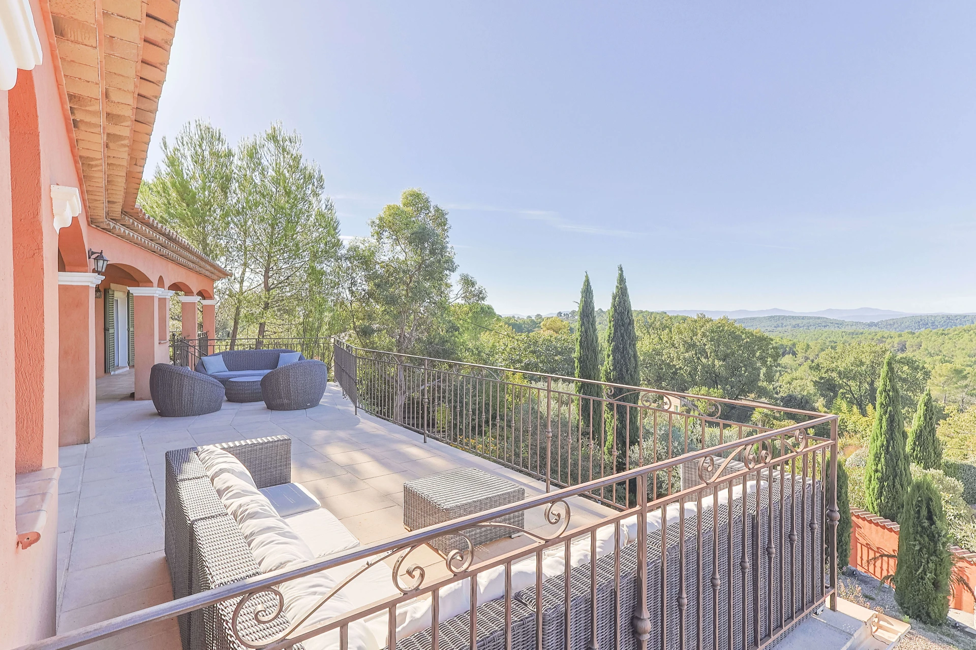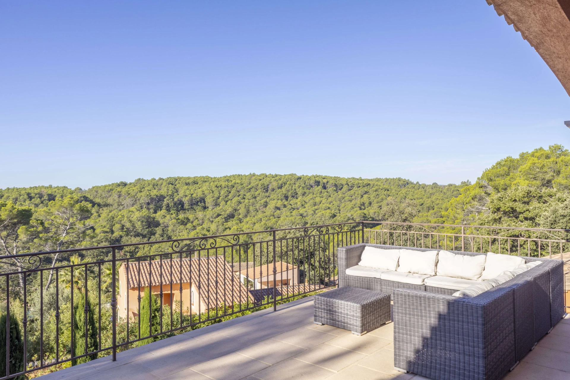 Buiten wacht u een prachtig verwarmd en omheind privézwembad van 9,5 x 5 m, samen met een ruim poolhouse voorzien van een zomerkeuken en een eetgedeelte. De villa is omgeven door zowel open als overdekte terrassen, met meerdere comfortabele zitjes en loungehoekjes om te ontspannen met een aperitiefje met familie of vrienden, terwijl u geniet van het panoramische uitzicht op de weelderige omgeving.