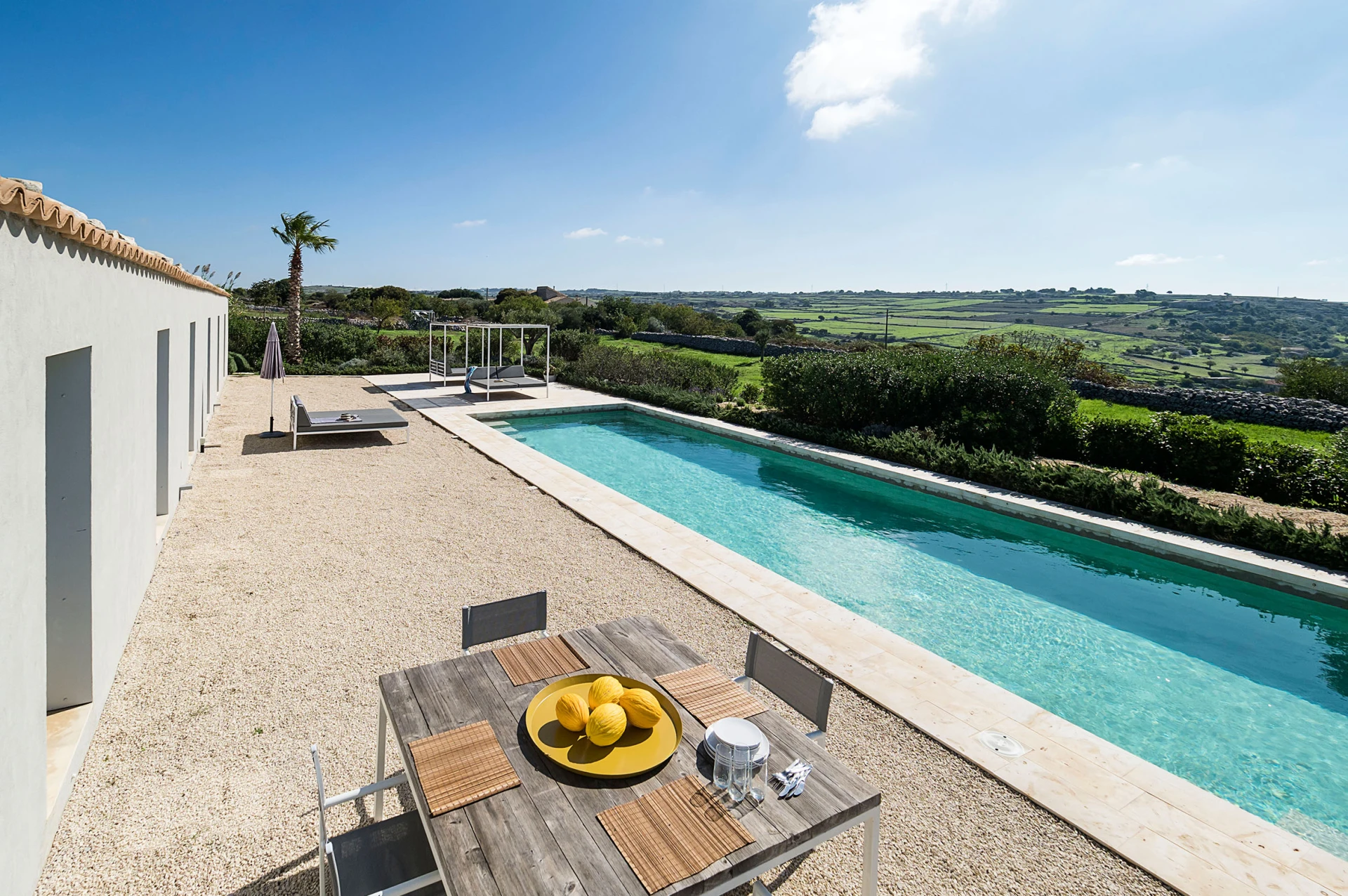 Ontdek Villa Ragusa in Sicilië! Een prachtige, moderne en comfortabele vakantievilla voor 6 personen, met een privézwembad en een panoramisch uitzicht op de omliggende natuur. Dit vakantiehuis in Sicilië ligt in het hart van het Siciliaanse platteland nabij Ragusa, in de buurt van het kasteel van Donnafugata.