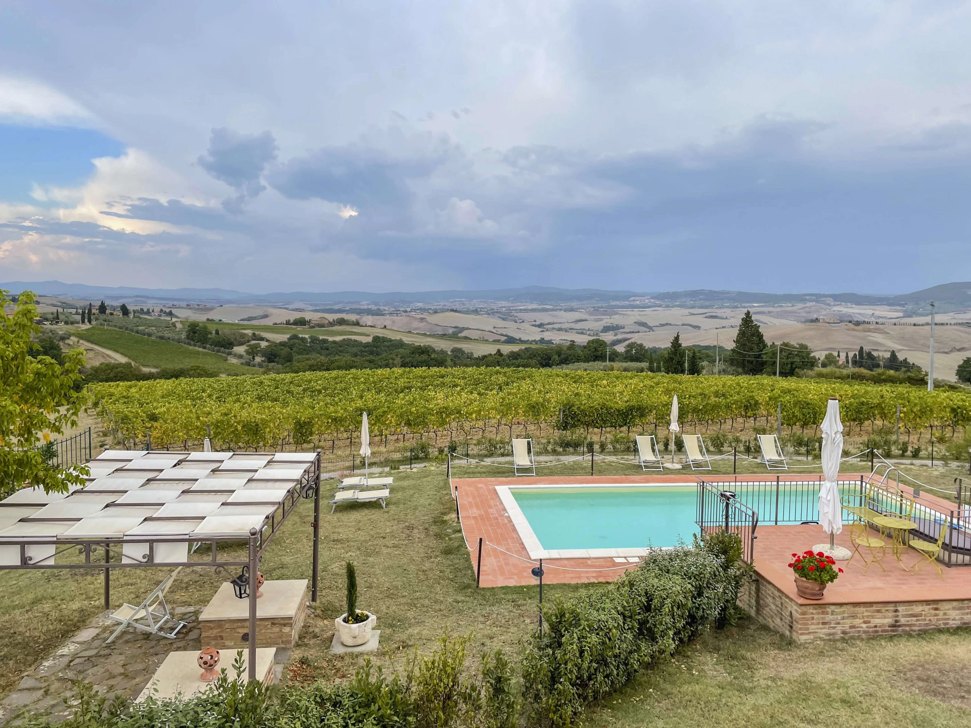 Het vakantiehuis is gelegen temidden van de wijngaarden en olijfbomen en dichtbij één van de meest belangrijke monumenten van Toscane nl., de Abdij of Monte Oliveto Maggiore, nabij Asciano. Degustatie van wijnen en olijfolie kan op aanvraag ter plaatse.