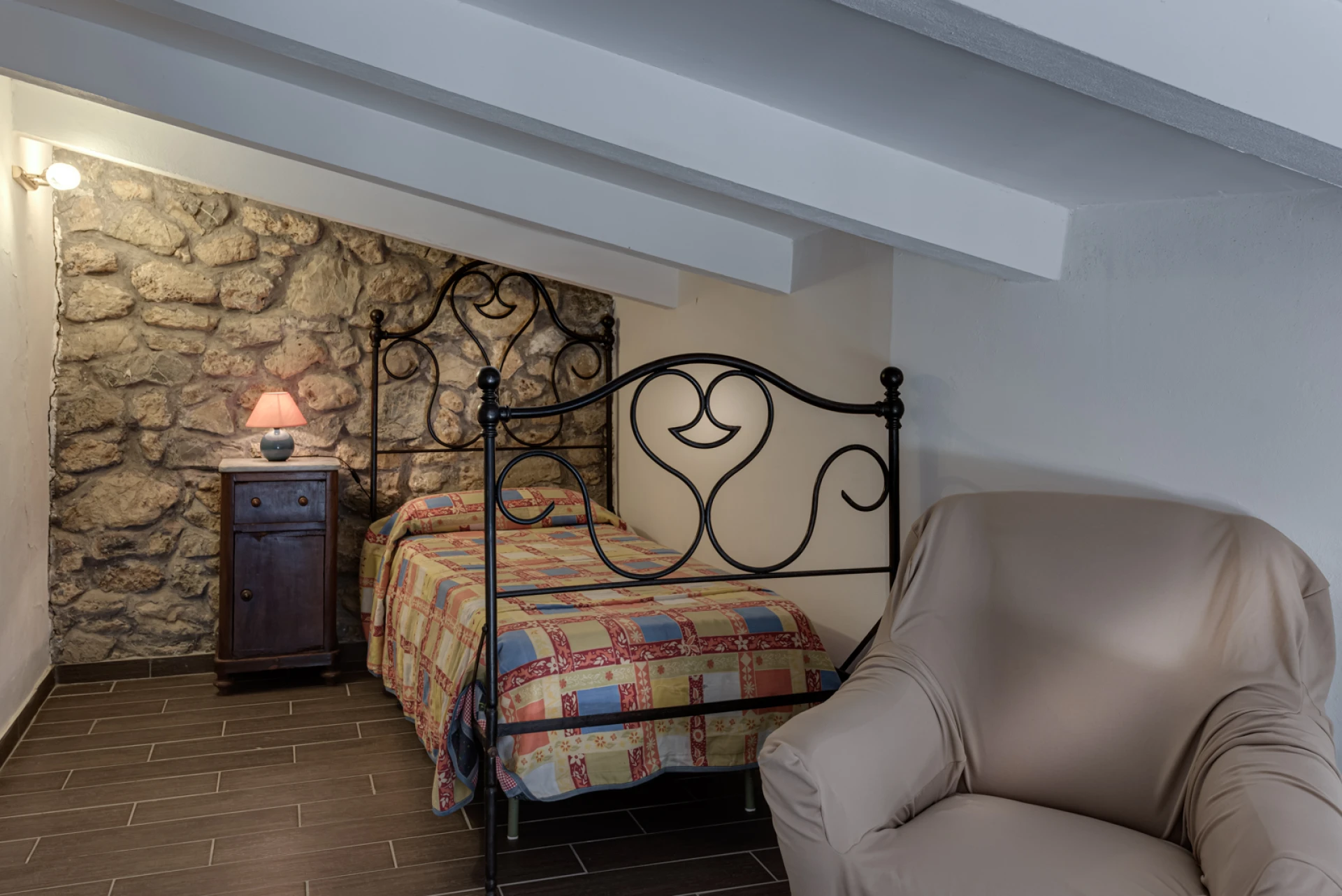 Het hoofdgebouw is een charmant stenen huis met een volledig uitgeruste keuken die rechtstreeks uitgeeft op de veranda, een gezellige eetruimte, vijf slaapkamers (waarvan twee met eigen badkamer), drie badkamers met douche en een ruime leefruimte met karaktervolle gewelfde plafonds.