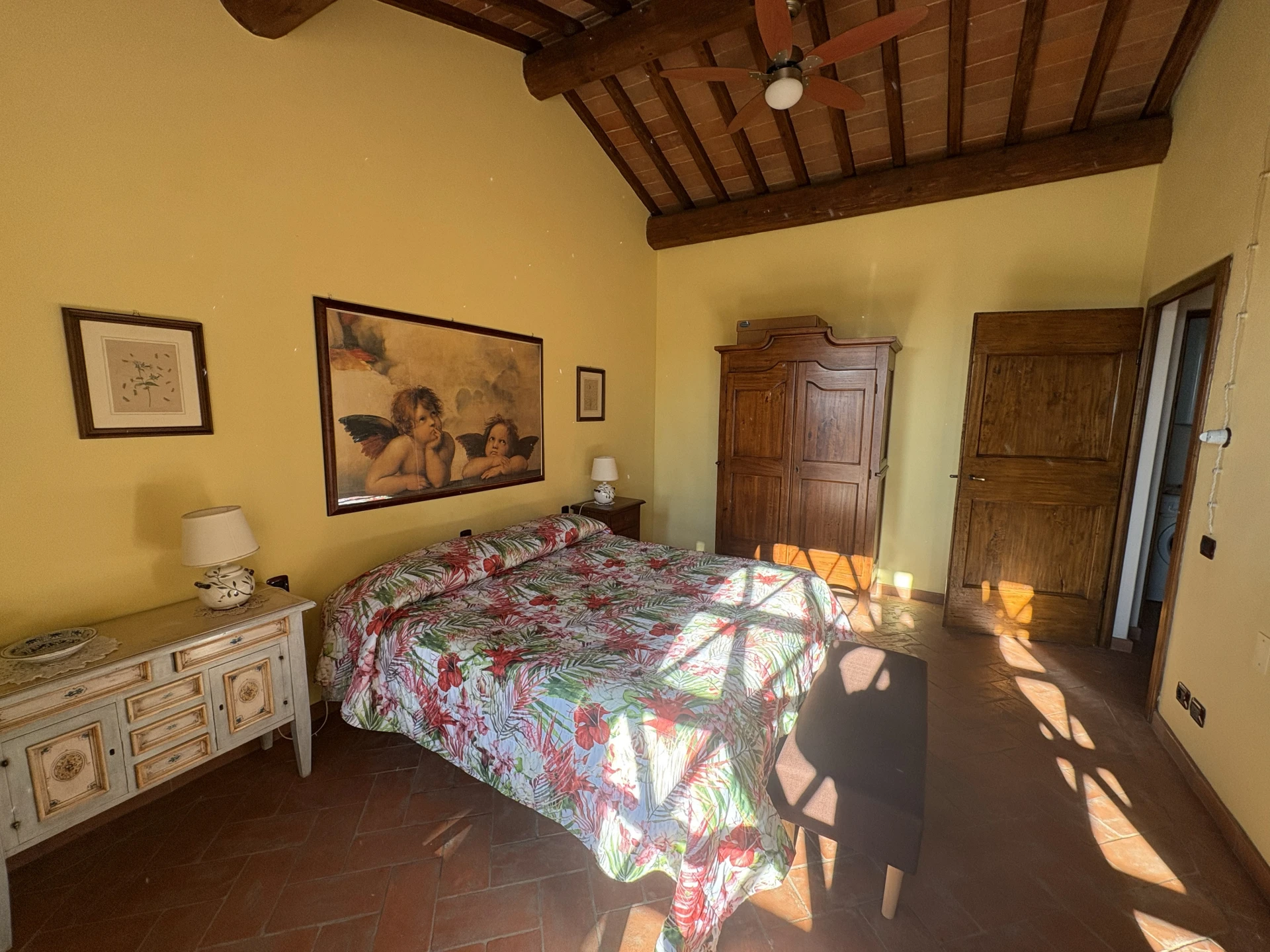 Het logement Sereno bevindt zich in het gerestaureerde fienile (schuur) en geniet van een zeer groot terras met prachtig uitzicht. Het beschikt over een volledig uitgeruste keuken en een slaapkamer met een tweepersoonsbed. De badkamer is voorzien van een douche. Daarnaast is er een leefruimte met een comfortabele slaapbank voor twee personen. Het appartement is licht en gezellig en combineert authentieke Toscaanse elementen met modern comfort.