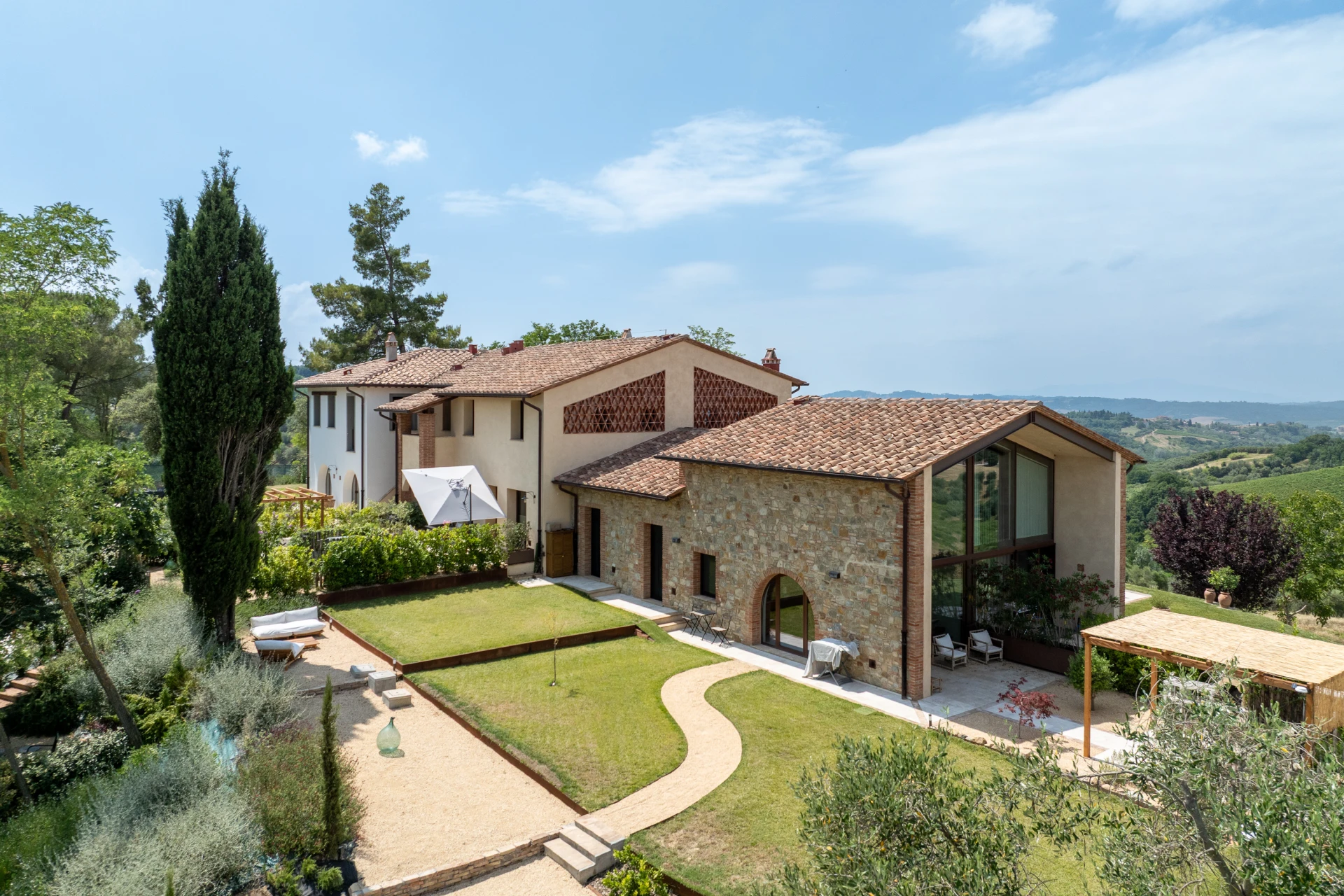 Via mooi aangelegde paden bereik je de gedeelde verwarmde infitiny pool (18x9m, 1,40m diep - open van 01/05 tot 31/10) met zonneterras, ligbedden en parasols per unit. Extra faciliteiten zoals een buitendouche, toiletten en een gedeelde buitenkeuken zorgen voor een zorgeloos verblijf. Elke unit heeft een privé buitenruimte met veel aandacht voor comfort en privacy. Vergeet niet de overdekte bar met ijskast, inductievuur,  BBQ om er een gezellige avond van de maken. Parking is voorzien op het terrein (niet overdekt), terwijl het Borgo di Spereto autovrij blijft voor extra rust en veiligheid. Dit vakantiedomein biedt een prachtige tuin en een buitengewone sfeer met panoramische zichten.
