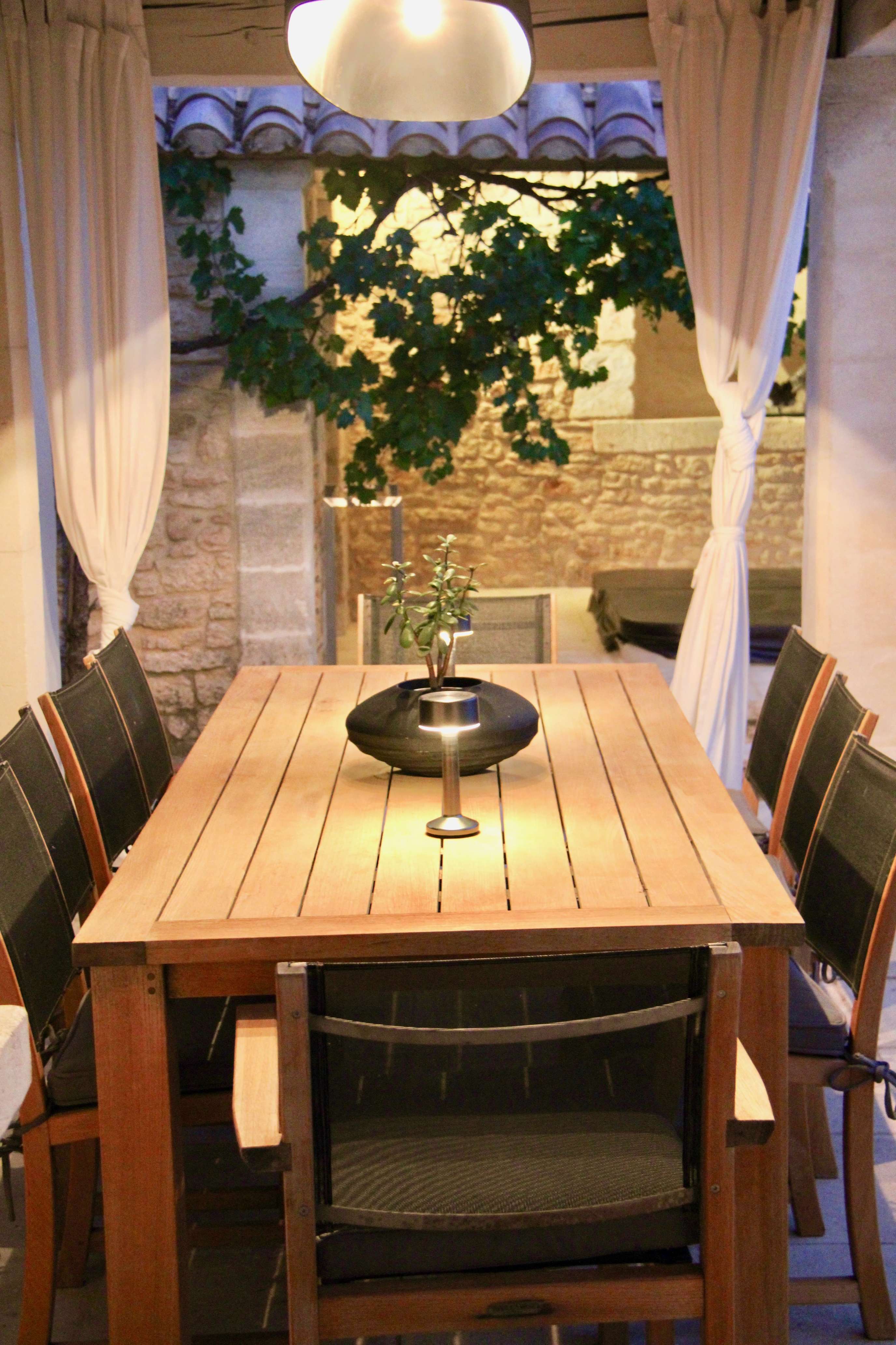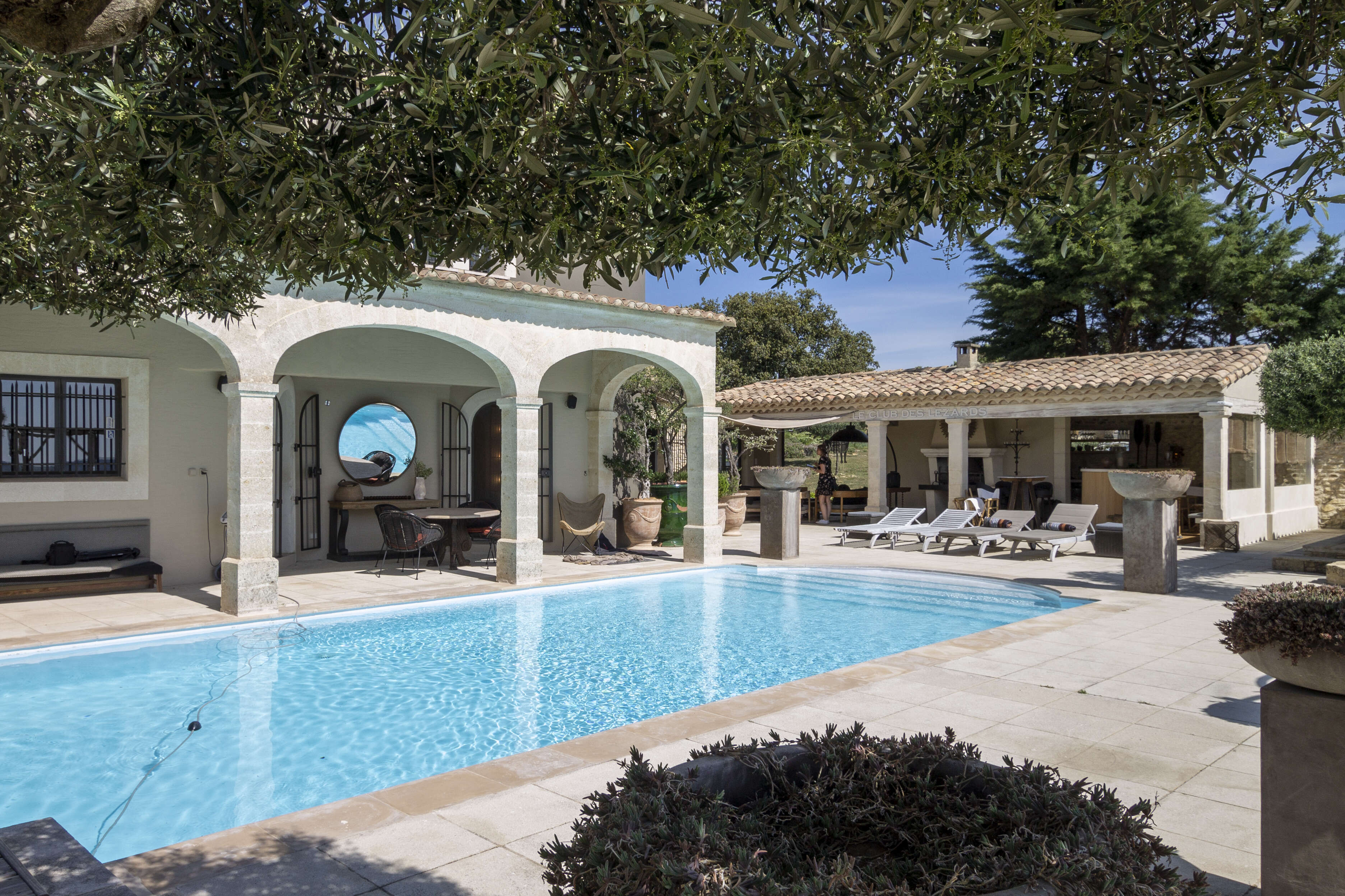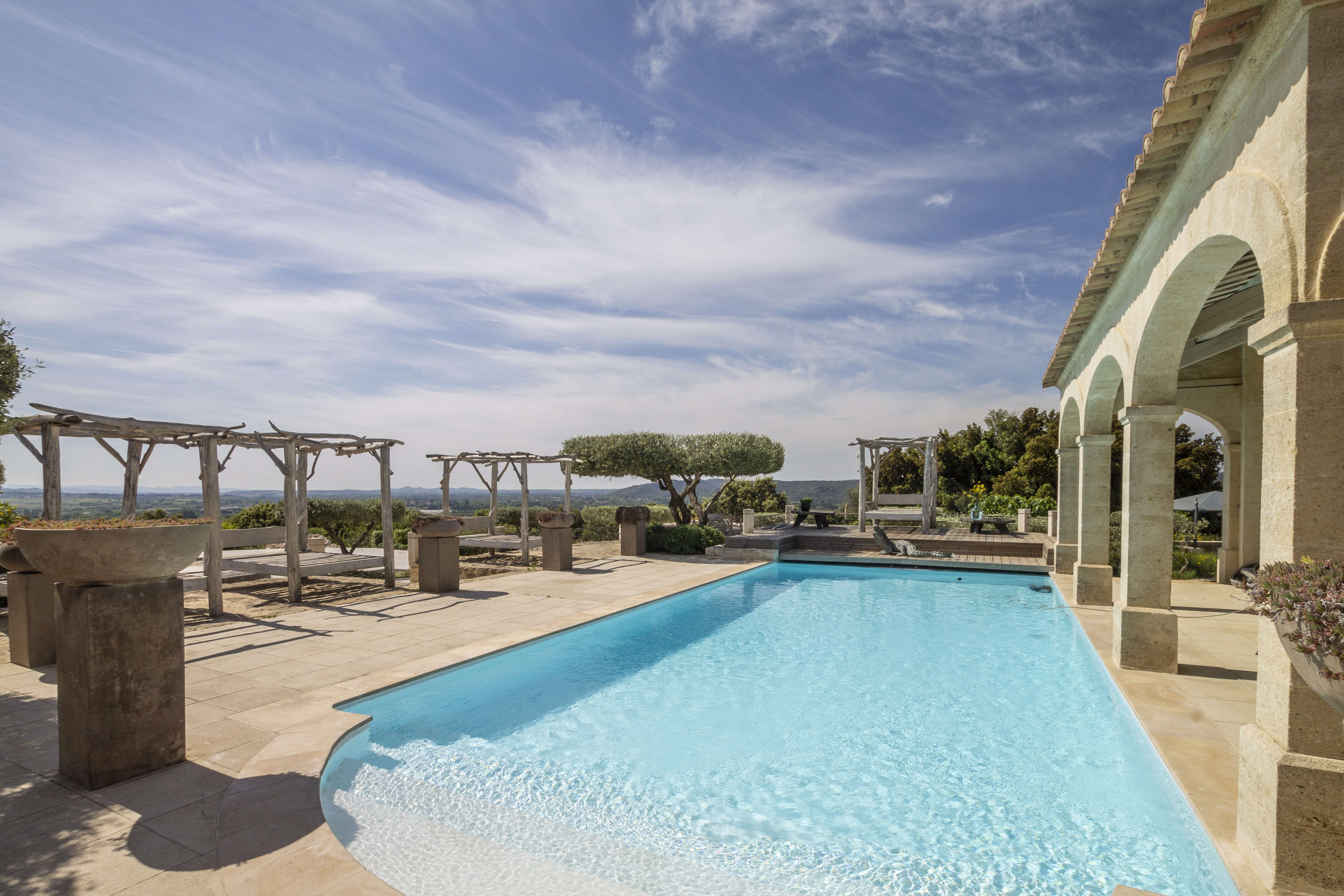 Het authentieke design van deze vakantievilla met zwembad in Languedoc-Roussillon is typerend voor deze pittoreske streek. Een klassiek voorbeeld van een mooie mix van de Franse en de Romeinse stijl, geïnspireerd op de iconische Pont du Gard, waar deze villa - als enige in de streek trouwens – pàl op kijkt. Denk: grote, overdekte galerijen die de villa omzomen en verschillende ruimtes met elkaar verbinden, waarbij binnen naadloos overloopt in buiten, en andersom. Romeins metselwerk siert het plafondgewelf van de keuken, een knipoog naar het historische aquaduct in de vallei verderop. De witte houten panelen tegen de muur en de prachtige verweerde balken in het plafond van de living blijven dan weer trouw aan het op-en-top Franse erfgoed.