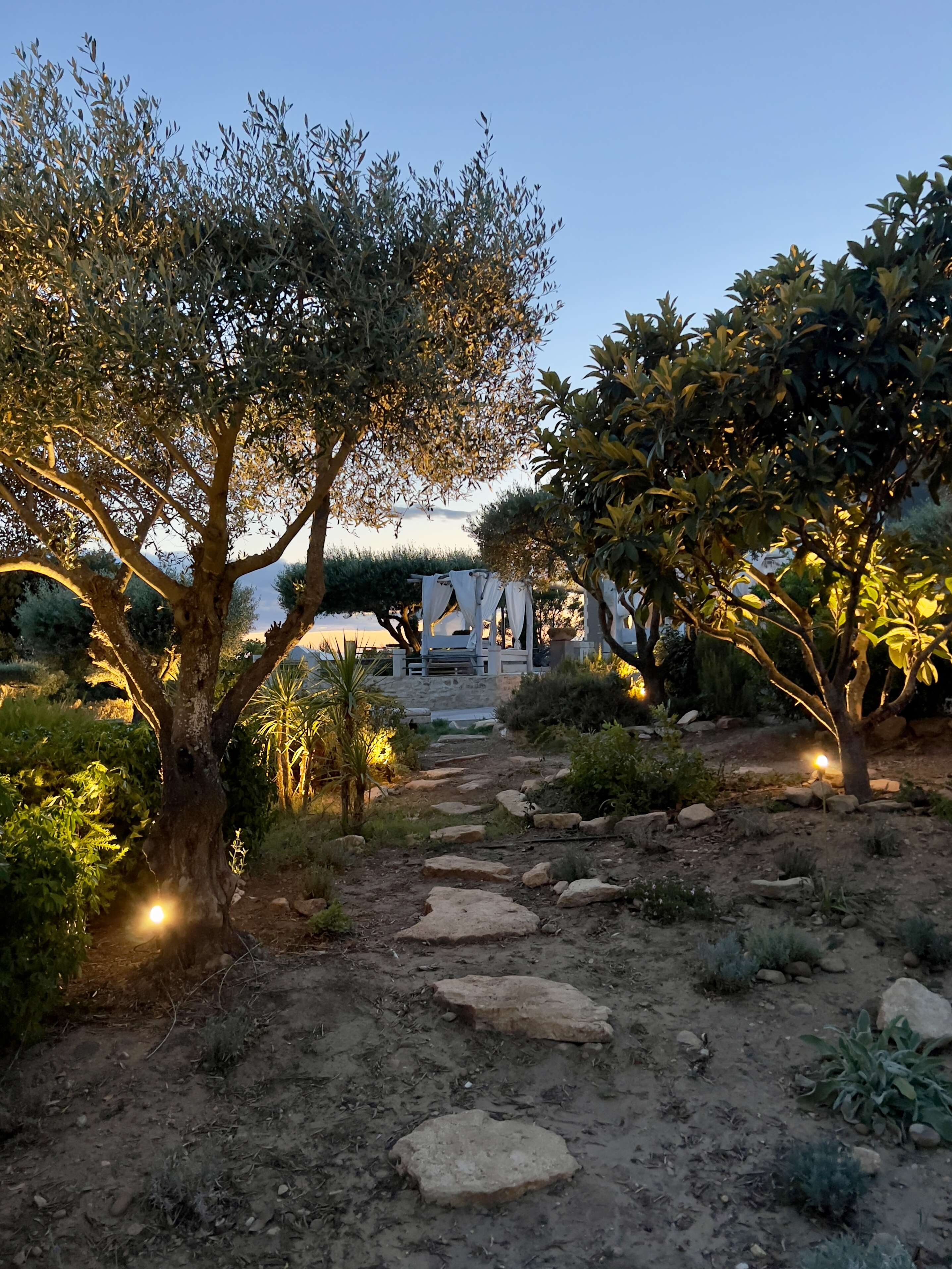 Ga op verkenning in de tuin rond de villa, en je ontdekt kleurrijke rozen in volle bloei, een cactustuin, vijgenbomen, een potager, geurige eucalyptus en wilde mediterraanse kruiden, ideaal om mee te koken in de volledig uitgeruste keuken. En wanneer de zon zachtjes ondergaat transformeert het terras in de ultieme plek voor een diner al fresco, waarna je voor de open haard en de warmtelampen je soirée in stijl afsluit.