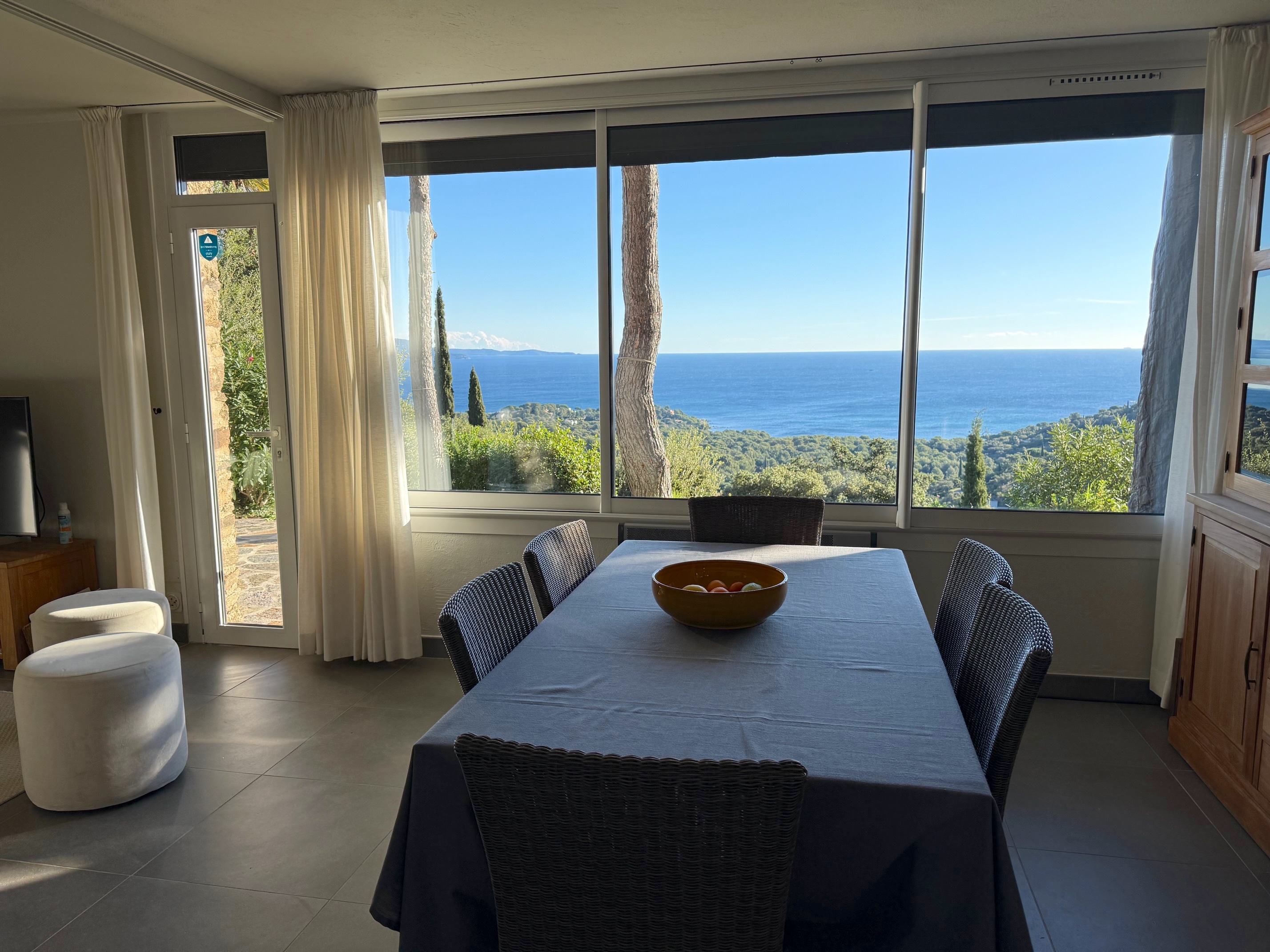 Valanvi is een gezellige vakantiewoning met privezwembad gelegen in het privé en bewaakt domein van Gaou Bénat (Provence-Alpes-Côte 'Azur) en biedt een prachtig, panoramisch zicht op de zee, les Iles d’Or, St. Clair et Aiguebelle. Er is een privé zwembad (9mx4,5m - van 1,5m - verwarmd van begin mei tot en met september) dat omringd is met mooie terrassen. Er is een zeer aangenaam overdekt terras met gasbarbecue en zicht op zee. Ideaal voor de nodige schaduw en lange zomeravonden. Deze vakantiewoning in Gaou Béna is uiterst verzorgd en biedt een zeer mooi een aangenaam interieur. Ze bestaat uit de hoofdwoning en op een hoger niveau (aanpalend doch toegang via buiten) een mooie, goed ingerichte studio. De vakantiewoning met zeezicht is zeer rustig gelegen in een prachtig kader met vele faciliteiten dichtbij Bormes les Mimosas en Le Lavandou. Het privé strand van het Gaou Bénat is op 1500m. Tijdens juli en augustus is er op het strand een heel leuk, gezellig restaurant en zeilclub. 7 tennisvelden op het domein.