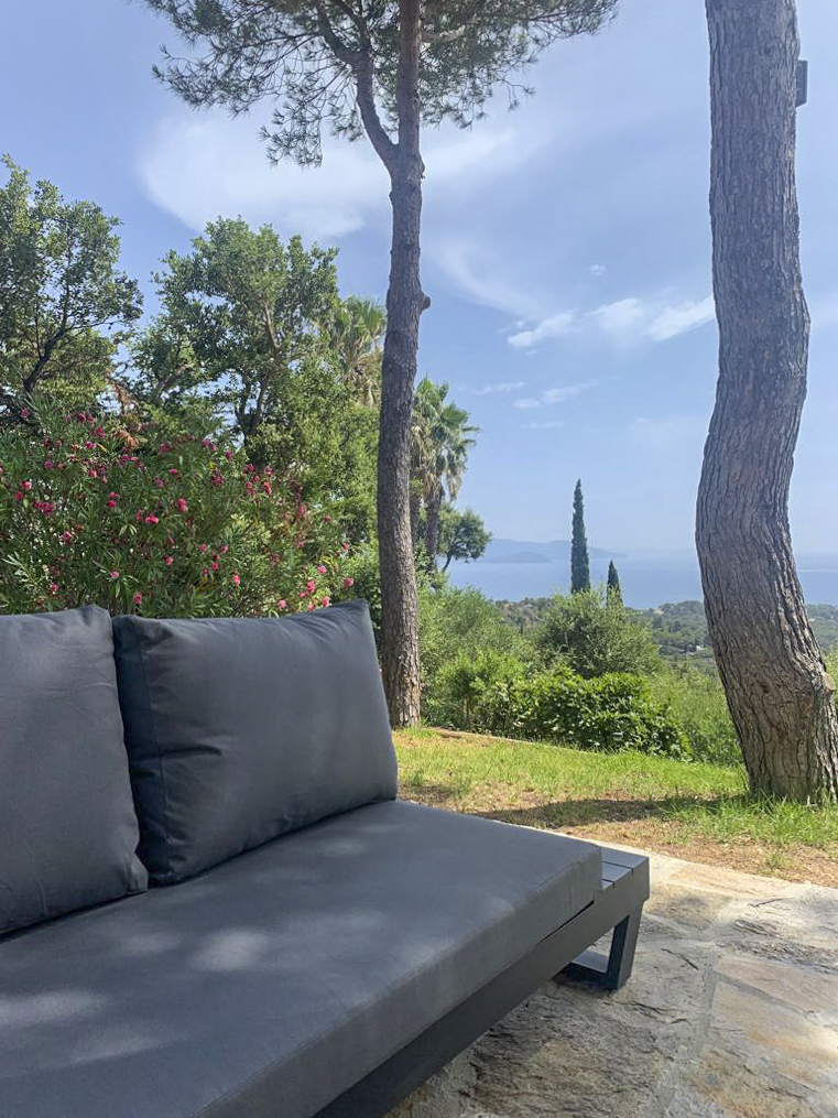 Valanvi is een gezellige vakantiewoning met privezwembad gelegen in het privé en bewaakt domein van Gaou Bénat (Provence-Alpes-Côte 'Azur) en biedt een prachtig, panoramisch zicht op de zee, les Iles d’Or, St. Clair et Aiguebelle. Er is een privé zwembad (9mx4,5m - van 1,5m - verwarmd van begin mei tot en met september) dat omringd is met mooie terrassen. Er is een zeer aangenaam overdekt terras met gasbarbecue en zicht op zee. Ideaal voor de nodige schaduw en lange zomeravonden. Deze vakantiewoning in Gaou Béna is uiterst verzorgd en biedt een zeer mooi een aangenaam interieur. Ze bestaat uit de hoofdwoning en op een hoger niveau (aanpalend doch toegang via buiten) een mooie, goed ingerichte studio. De vakantiewoning met zeezicht is zeer rustig gelegen in een prachtig kader met vele faciliteiten dichtbij Bormes les Mimosas en Le Lavandou. Het privé strand van het Gaou Bénat is op 1500m. Tijdens juli en augustus is er op het strand een heel leuk, gezellig restaurant en zeilclub. 7 tennisvelden op het domein.