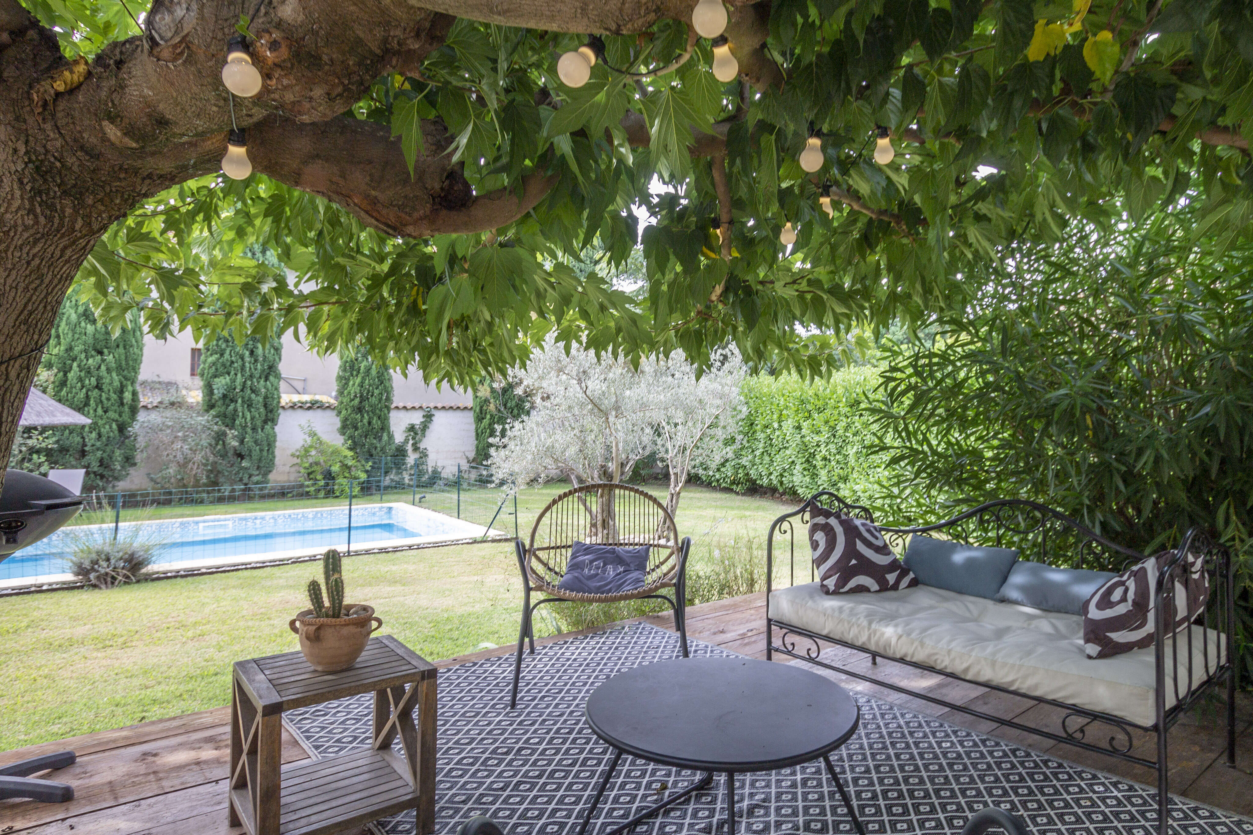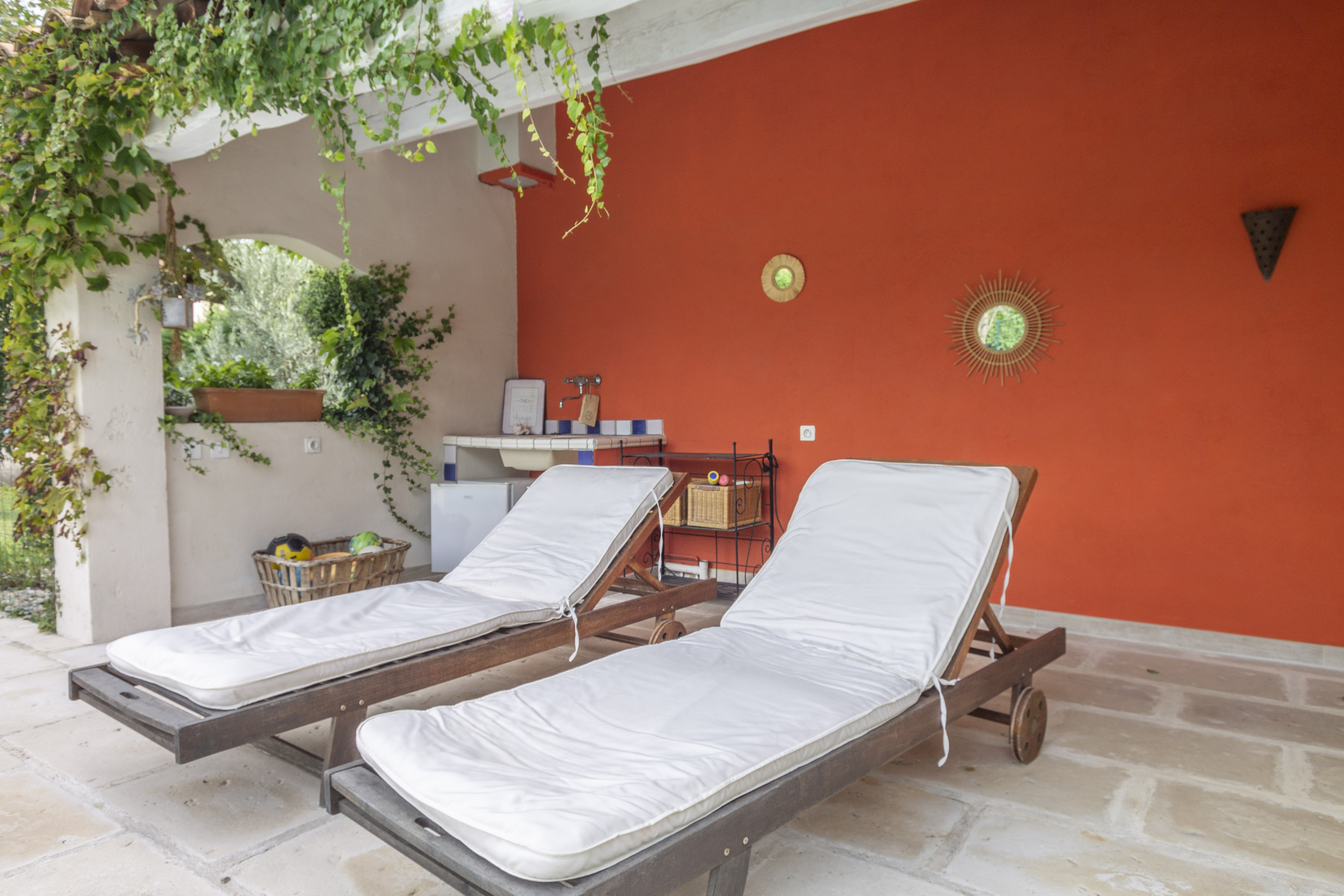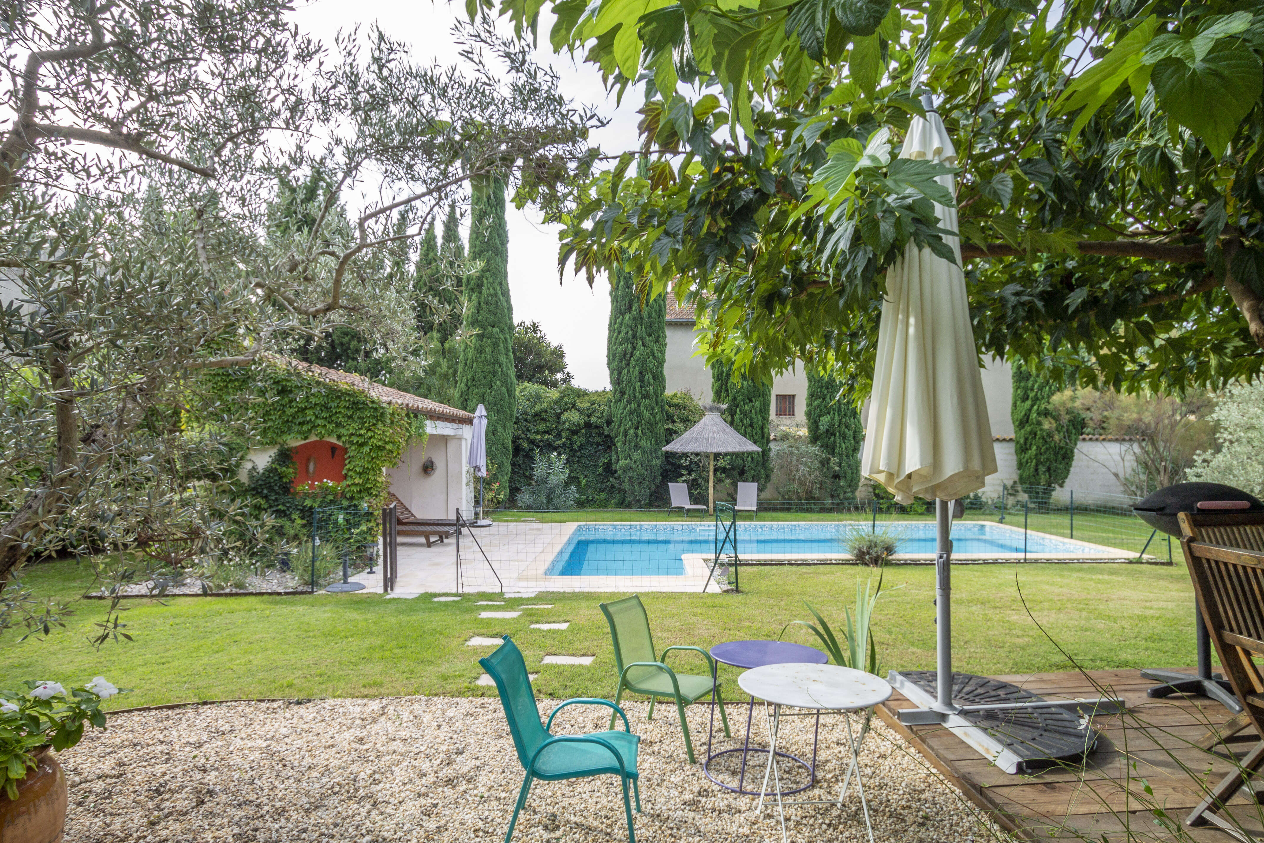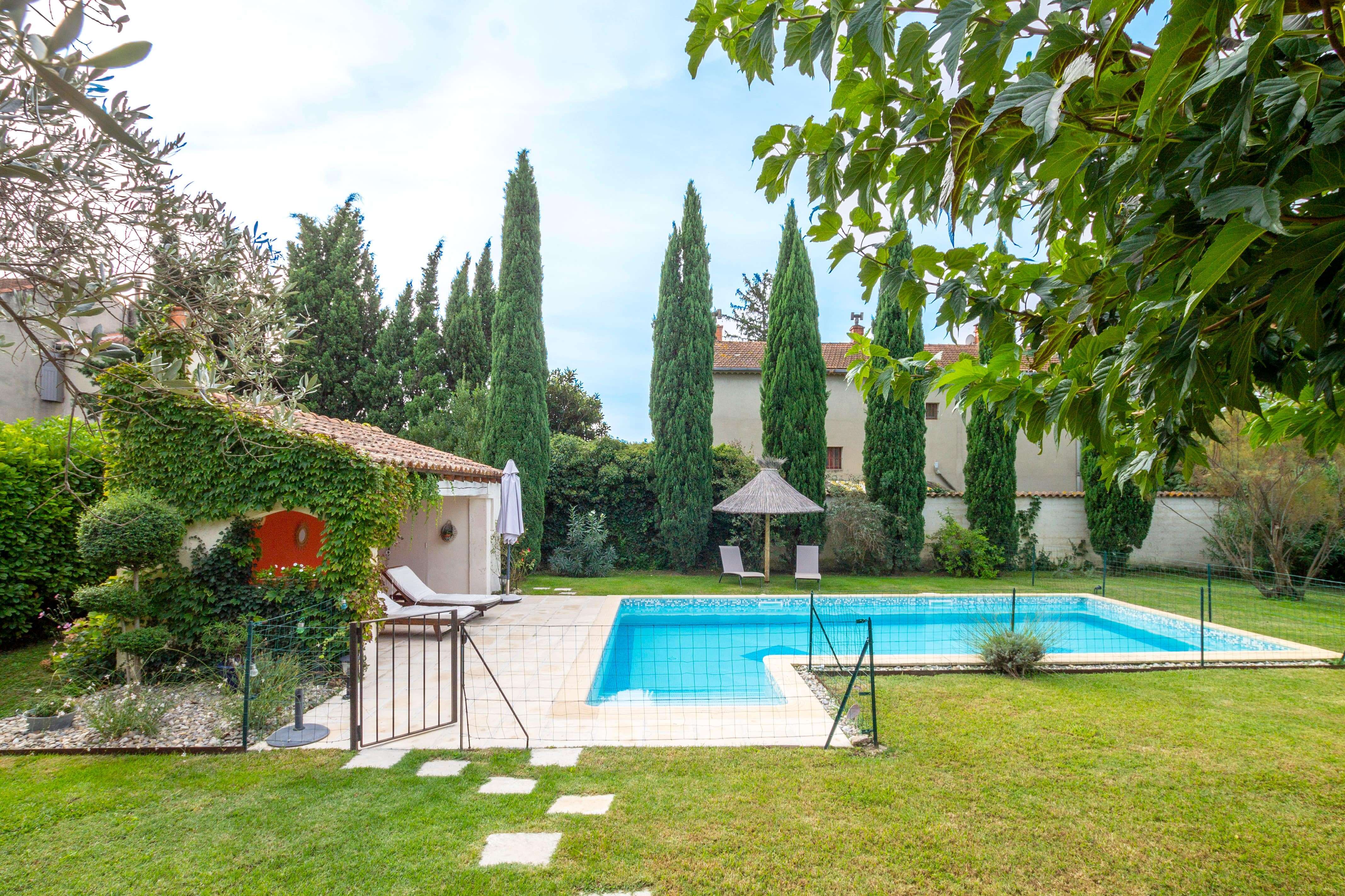 Maison Ugolin is een uitermate charmant vakantiehuis voor 6 personen met omheind privé zwembad gelegen op wandelafstand van het mooie dorpje Eyragues (Bouche-du-Rhône/Provence-Alpes-Côte d'Azur) in het hartje van de Provence. In deze vakantiewoning voor 6 personen waan je je in een klein privé paradijsje. De vakantiewoning in de Provence is volledig omheind met een ruime groene tuin, verschillende gezellige terrassen met het nodige tuinmeubilair, waaronder een buitensalon, ligzetels, kindertafel en kinderstoeltjes. De terrassen genieten van natuurlijke schaduw door de bomen en struiken die in de zomer mooi bloeien. Ook langs het mooie zwembad (9x4,50m - diepte : 1.40m) zijn er meerdere terrassen om zalig te ontspannen. Naast het zwembad bevindt zich een leukpoolhouse met buitendouche, WC, lavabo en frigo. Dit poolhouse leent zich perfect uit voor het bereiden van een heerlijke barbecue.