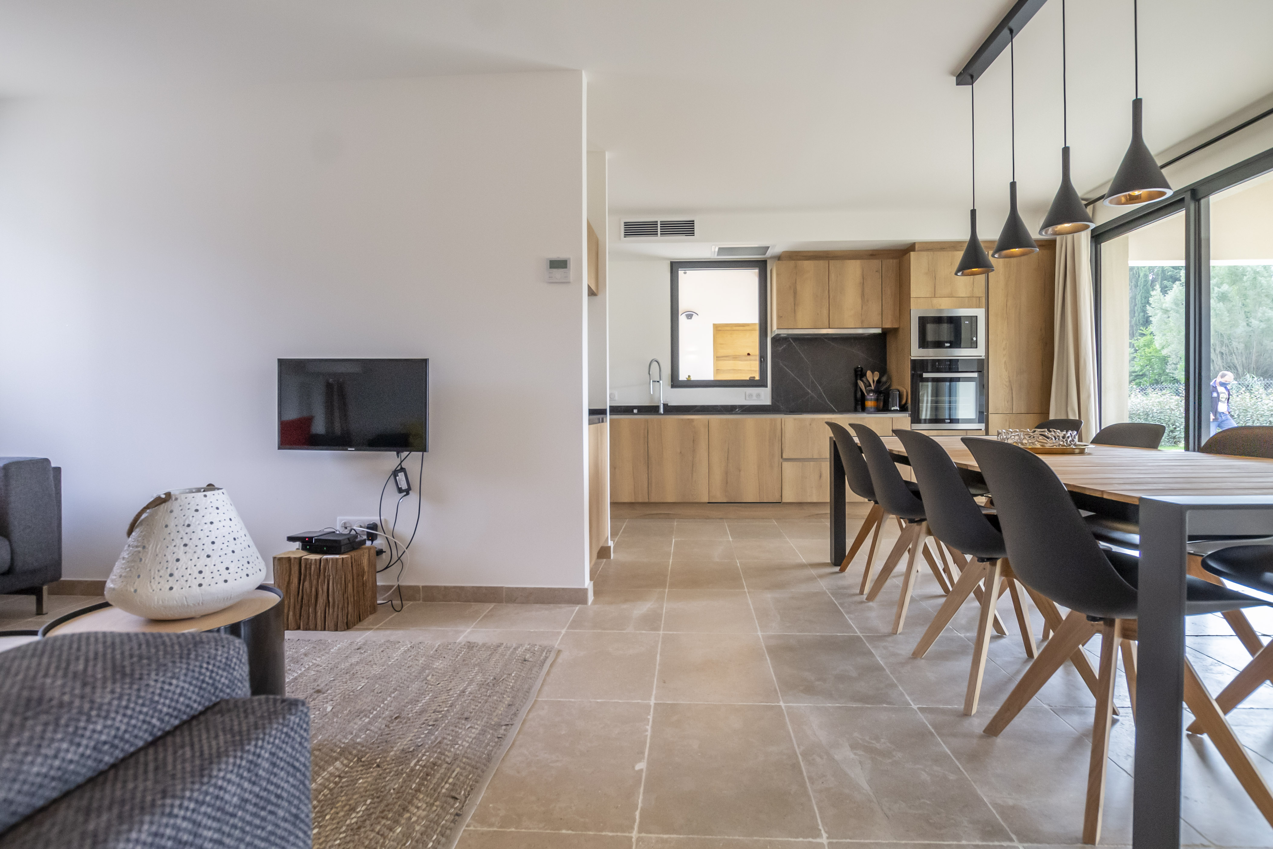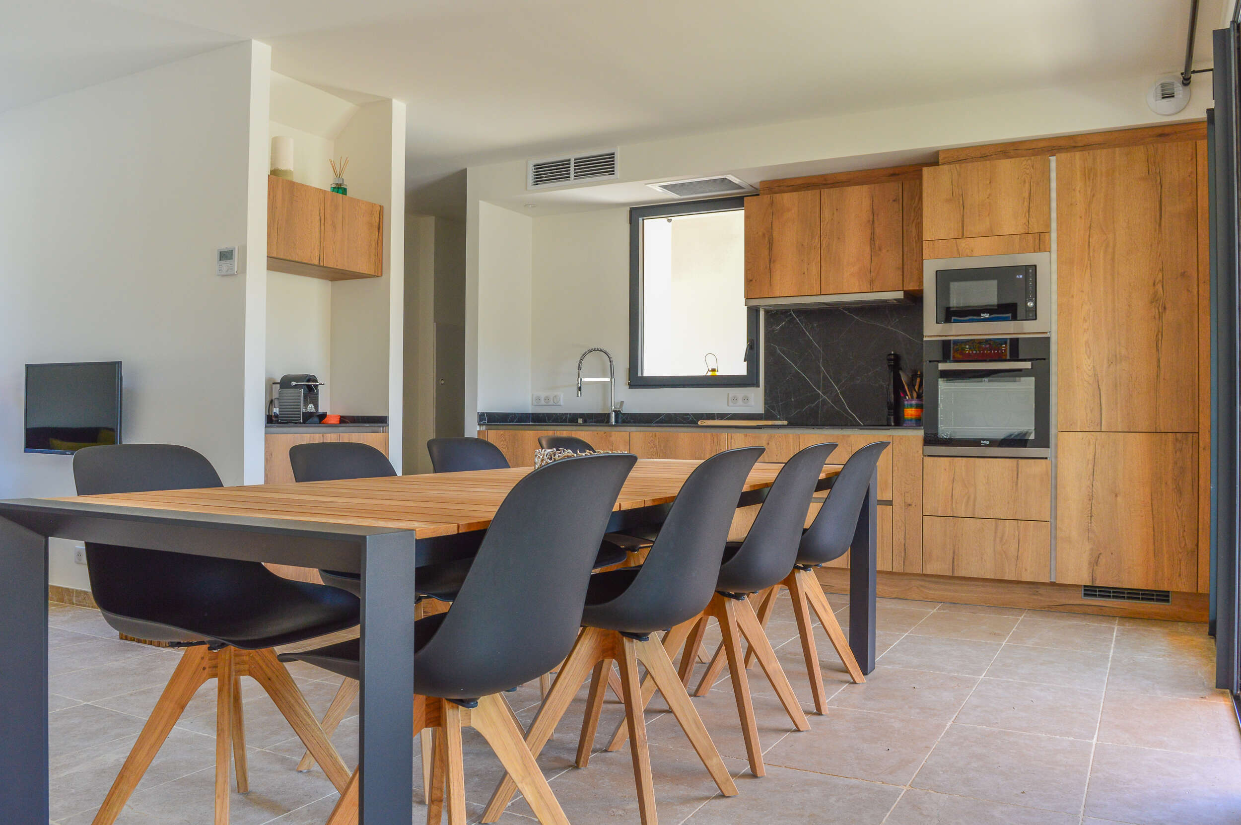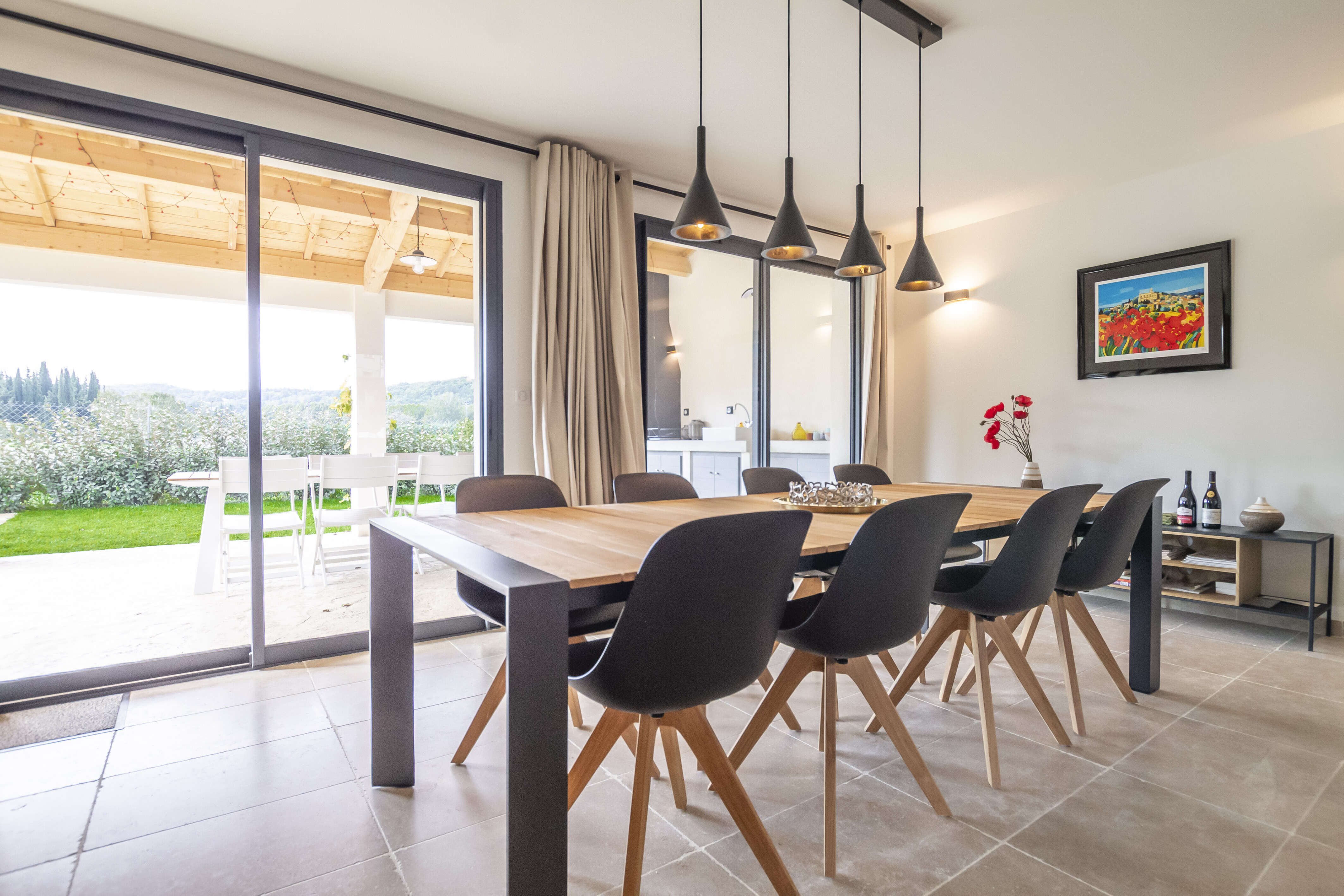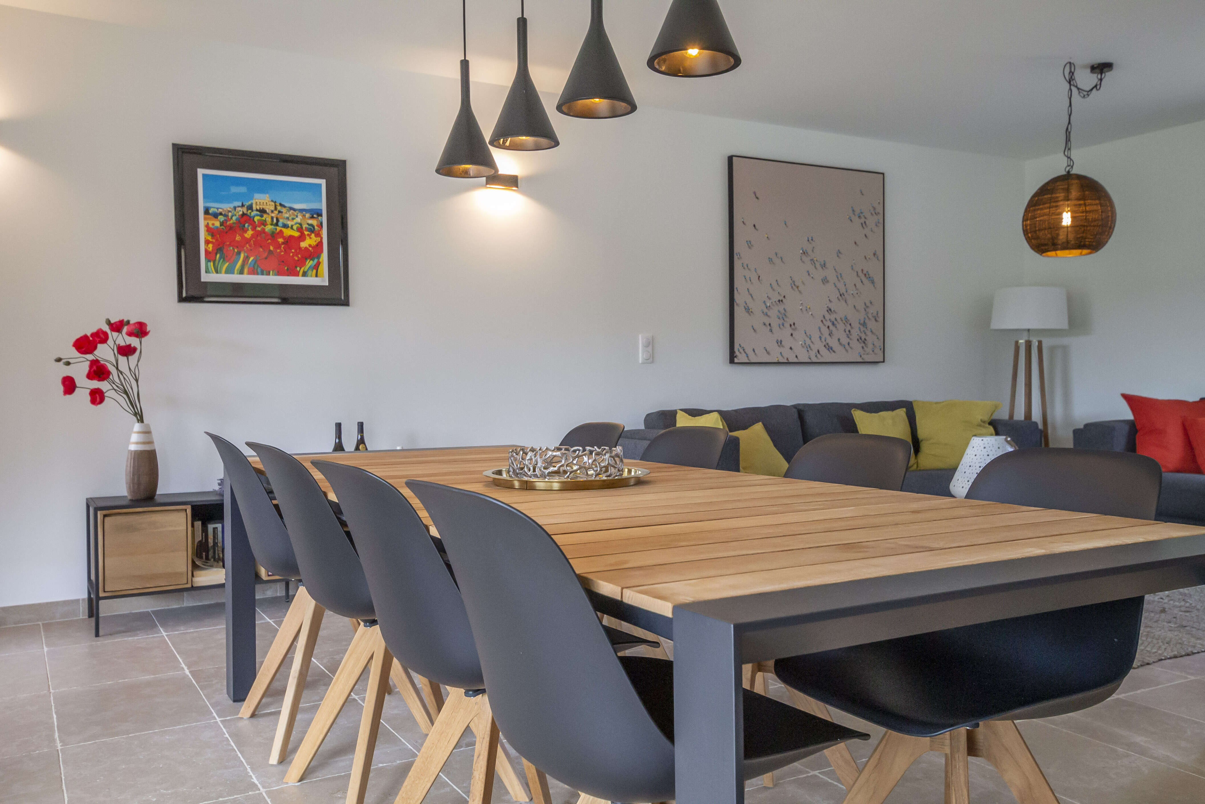 Dit vakantiehuis met privezwembad (8x3,5m - verwarmd) en op wandelafstand van het stadje Malaucène, geniet van een moderne en comfortabele inrichting. De mooie living en moderne keuken geven uit op het overdekt terras, de tuin en het privé zwembad. De slaapkamers bevinden zich op de bovenverdieping en hebben allemaal airco. De inrichting is bijzonder smaakvol met mooie, duurzame materialen.