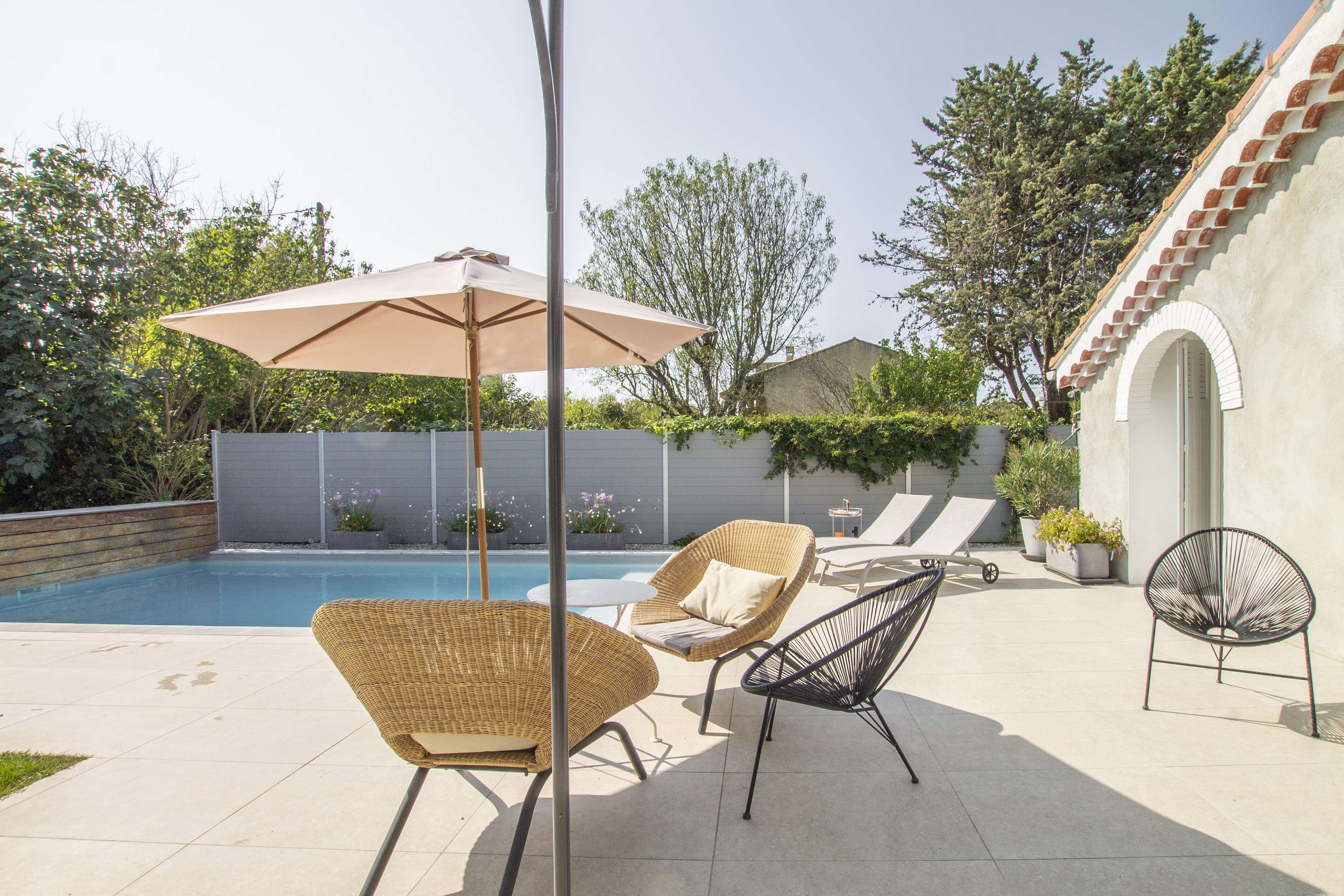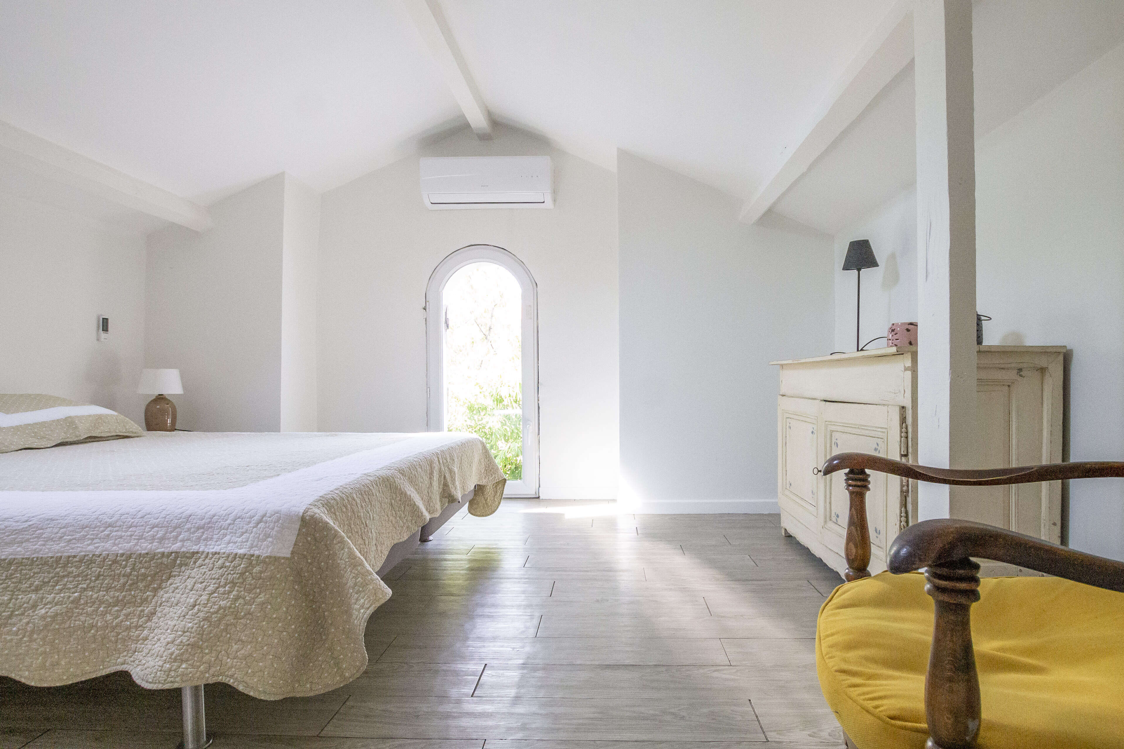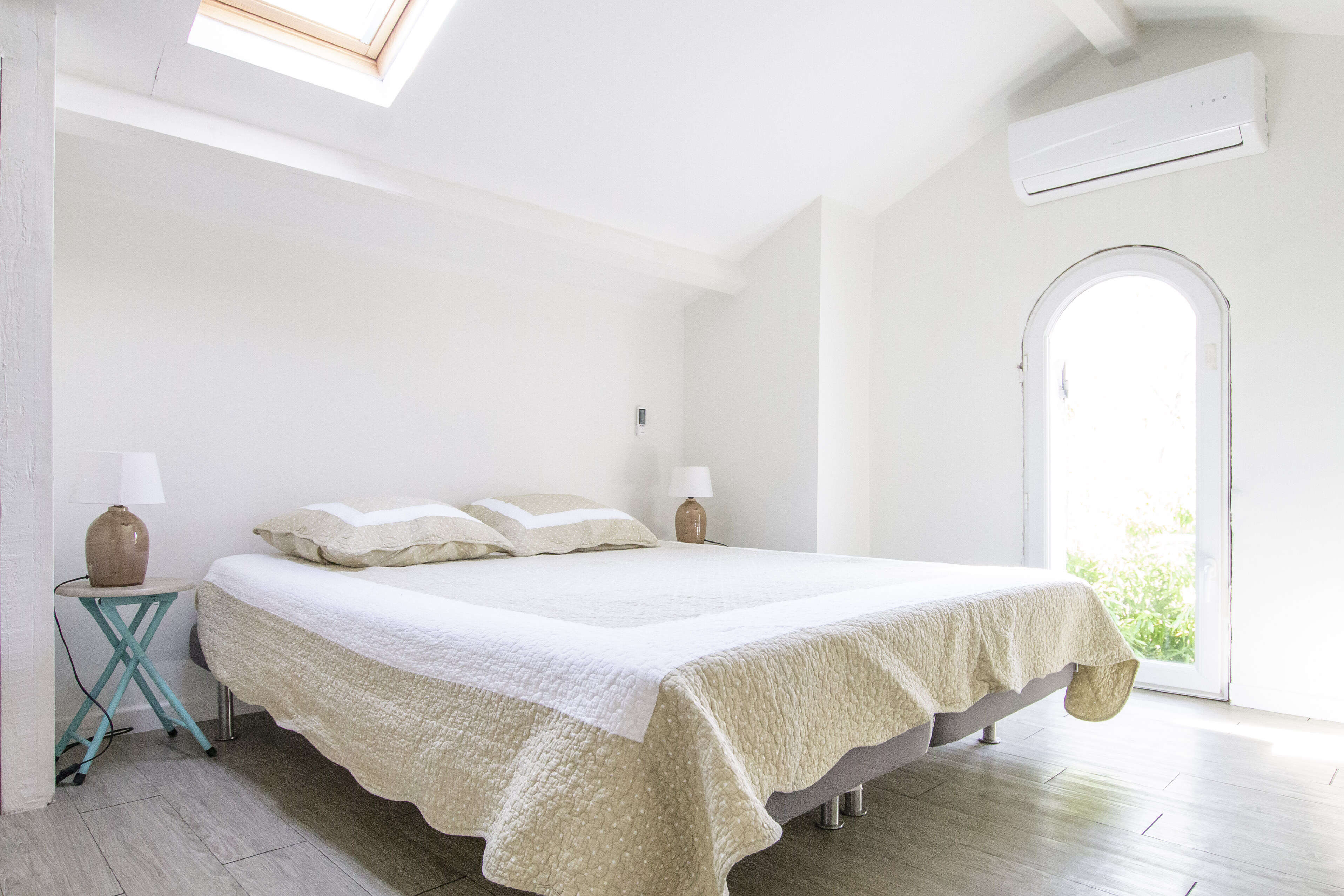 Het vakantiehuis met tuin voor 6 personen is zeer mooie en smaakvolle inrichting met airco en ruime kamers. De slaapkamer op de verdieping is zowel bereikbaar via een binnentrap als een buitentrap. De douchekamer gelegen op de gelijkvloers is toegankelijk via een kleine buitenpatio.
