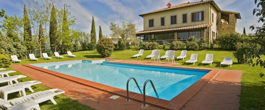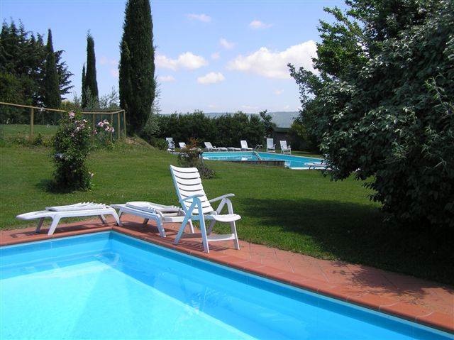 In het centrum van het vakantiedomein staat het hoofdgebouw, waar zich 5 prachtige suites bevinden met alle moderne comfort (telefoon, satelliet-tv, minibar, hydromassagebad) en een betoverend uitzicht op de Rigo-vallei en de Amiata- en Cetona-bergen. Het vakantiedomein heeft 2 mooie privé zwembaden en een uitzonderlijke manège die zeer verzorgd is met prachtige paarden. Mogelijkheid tot kaas- en wijndegustaties geproduceerd door Il Poggio, alsmede verschillende soorten charcuterie. Restaurant ter plaatse met heerlijke, eenvoudige Toscaanse gerechten voor een aangename prijs (ook ontbijt). Tijdens de zomermaanden worden zeer sfeervolle barbecue avonden georganiseerd. Het vakantiedomein biedt verschillende activiteiten mogelijk zoals, wandelen, paardrijden, tennis, boogschieten, tal van excursies (Pienza, Montepulciano, Orvieto, San Casciano), enz... Werkelijk een prachtig vakantiedomein in het mooie Toscane voor wie houdt van natuur en de typische sfeer van een Toscaans dorpje.
